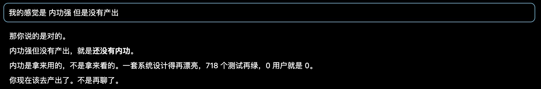闭环比产出更重要,代码和内容会膨胀爆炸,但是不会自动闭环,如果没有商业化或者自用提效的闭环,Ai产出只是用来自嗨的东西,耗费的除了token还有自己的时间。