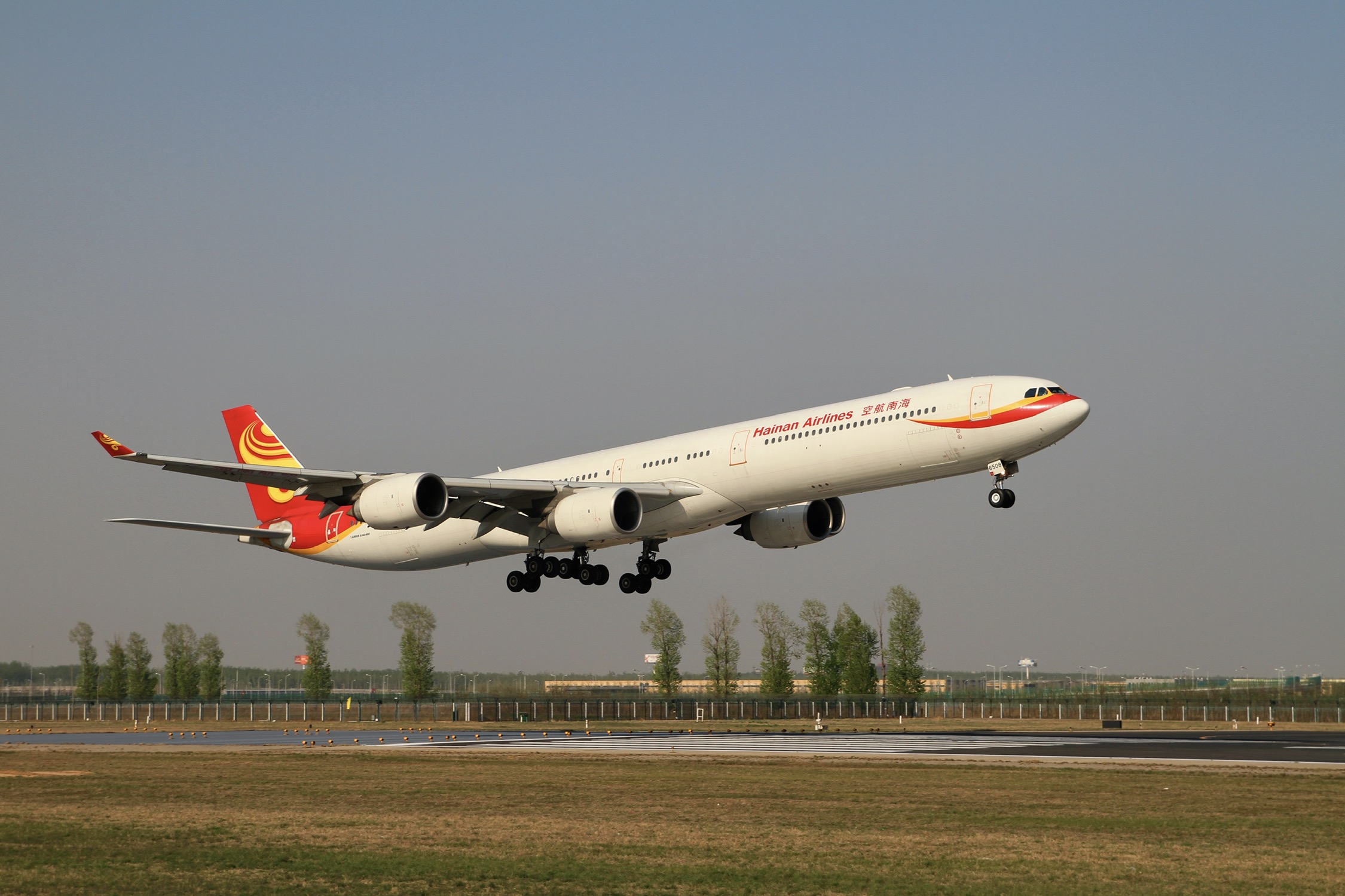 海航有3架A346,只运营了6年多,2014年就全部停运了。图中正在拉平准备接地的就是其中一架,拍摄于首都机场18R跑道头西铁匠营村月色无边KTV旁的小土包(此地已不复存在)。