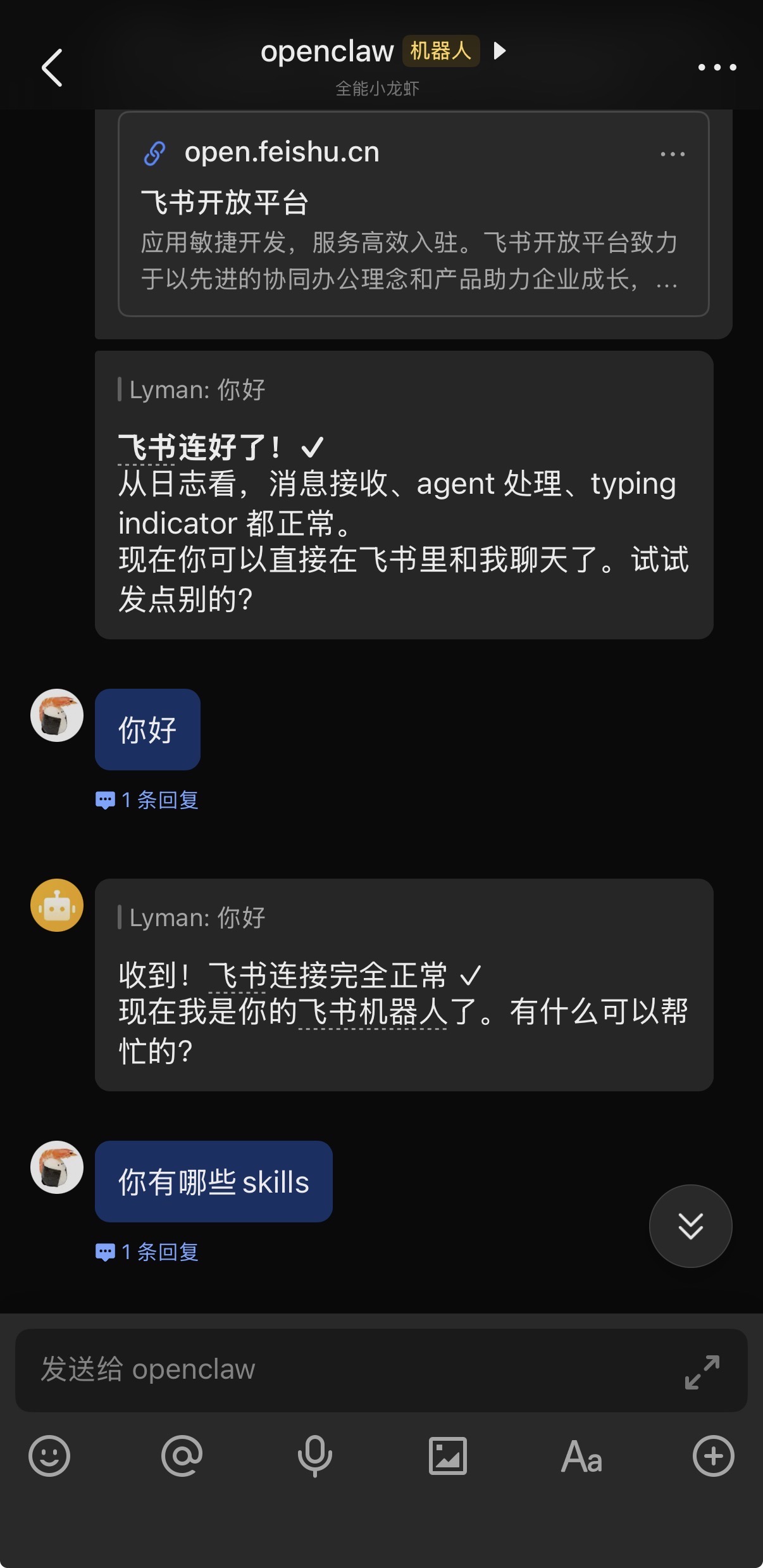 在虚拟机里搭了openclaw🦞,飞书用起来更方便些