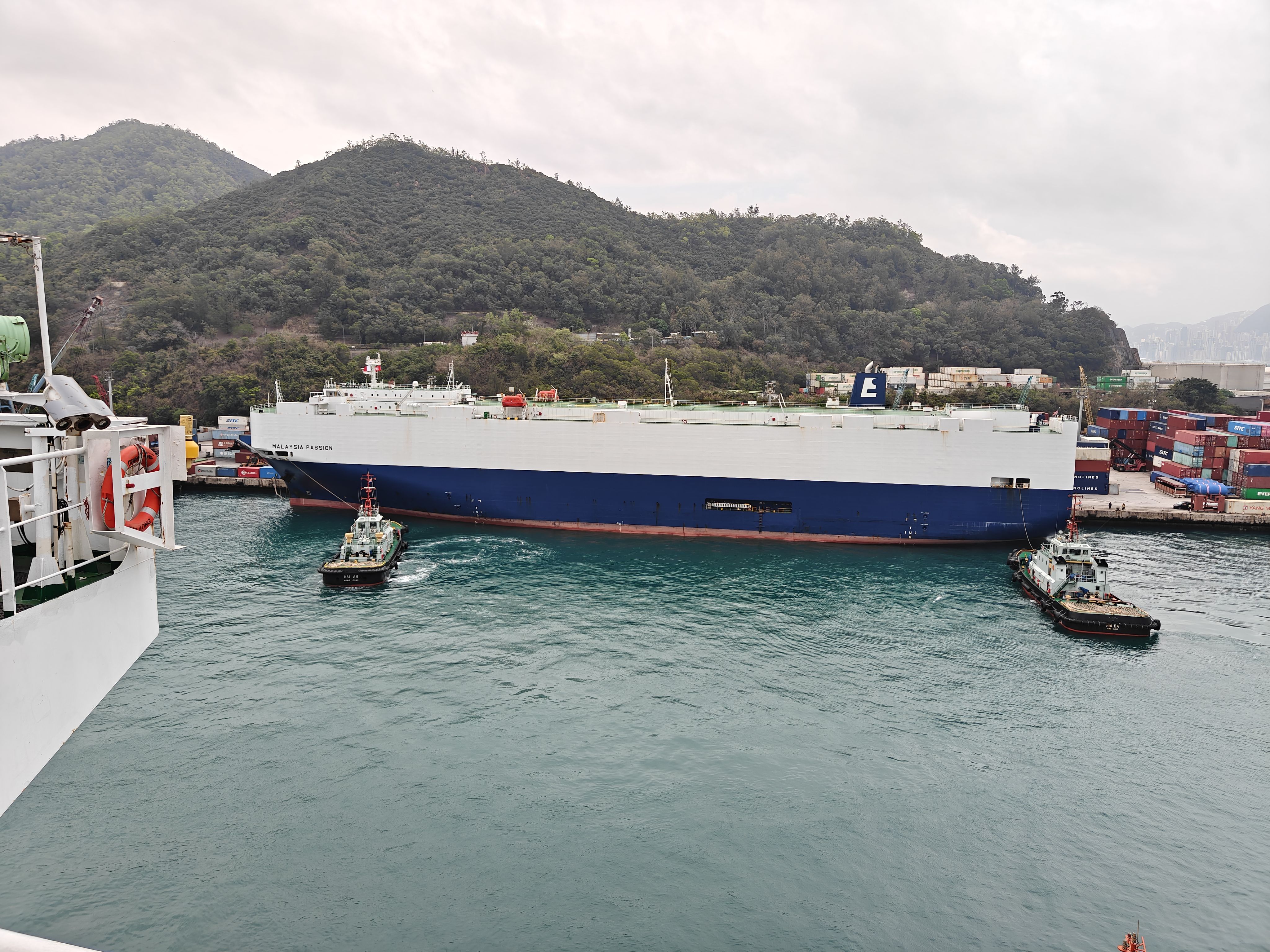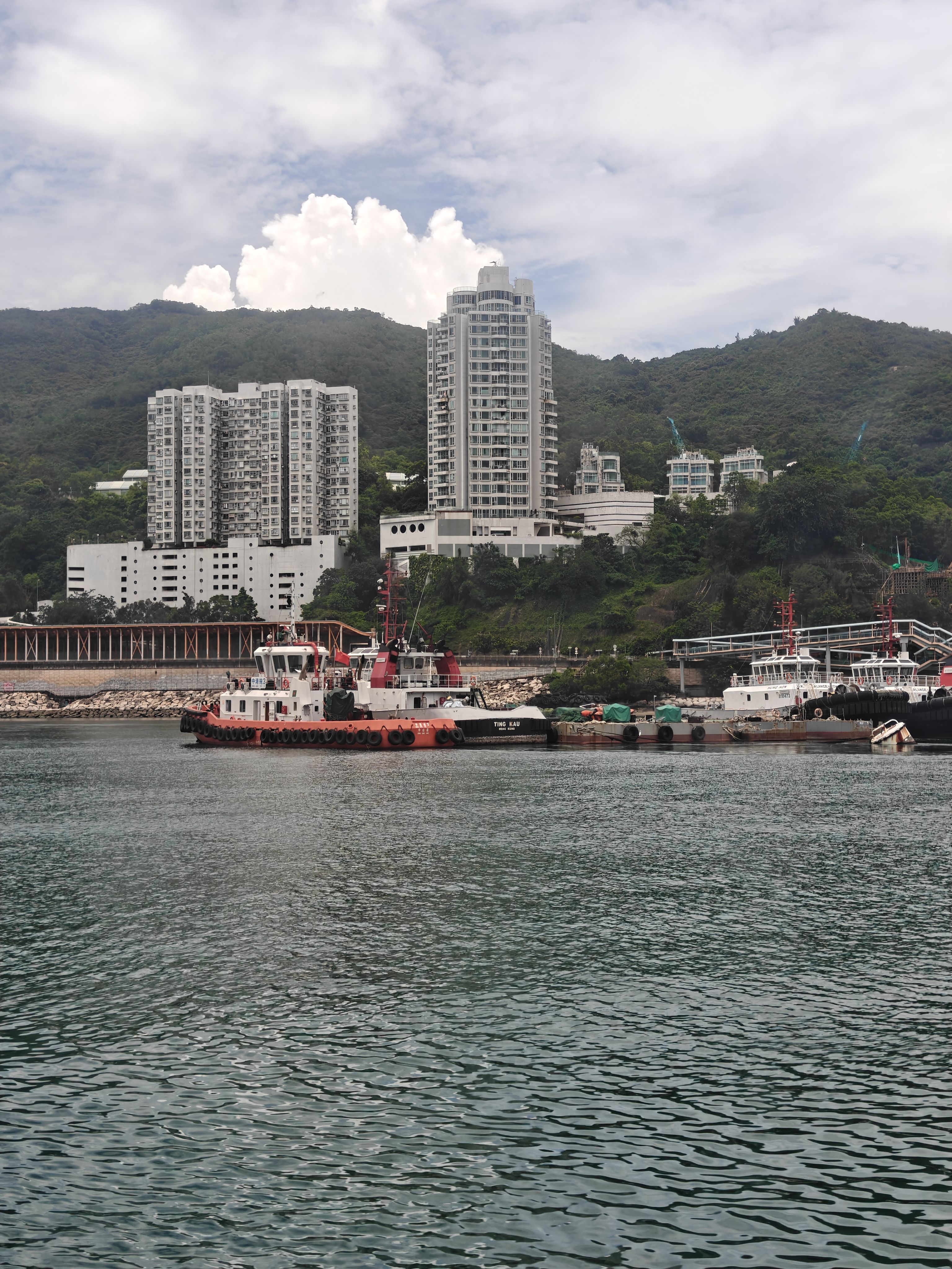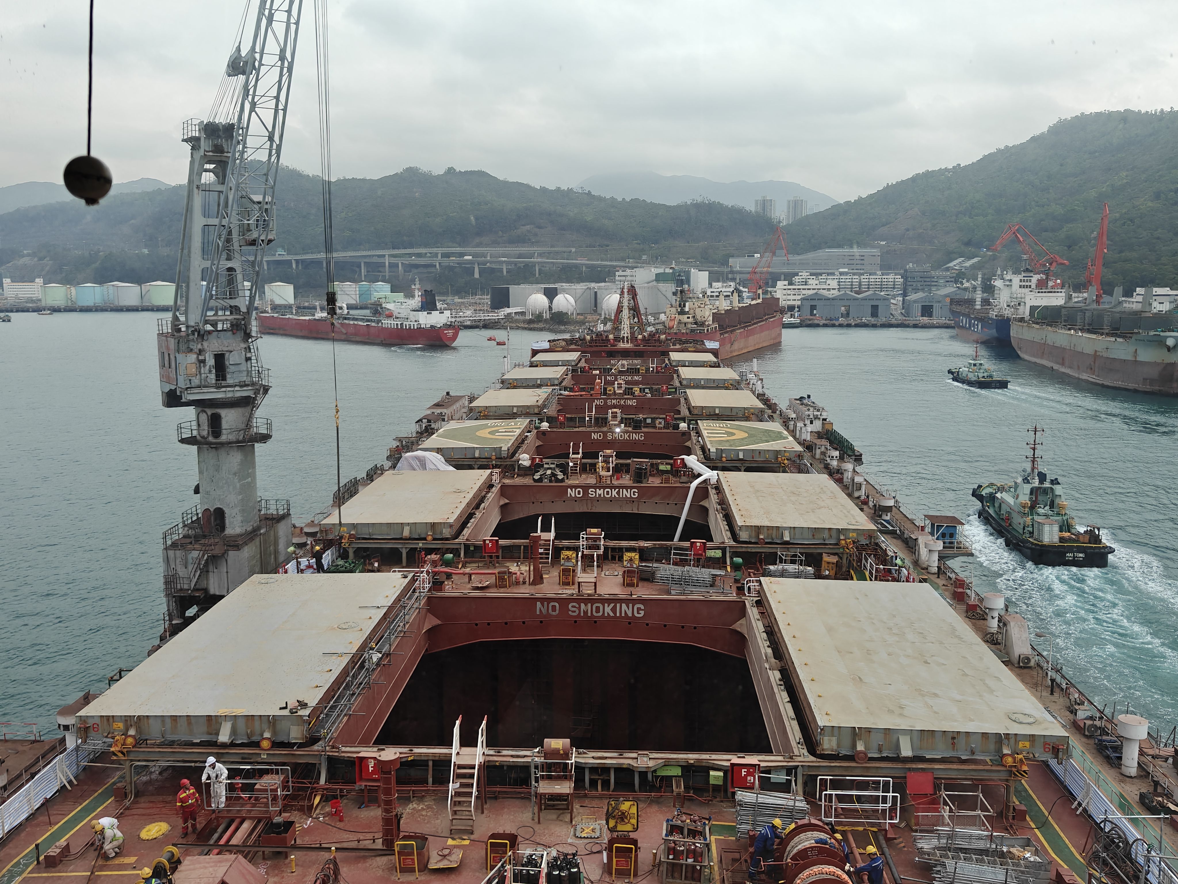 看到后面的小拖轮已经完成修理换新涂装真是百感交集
