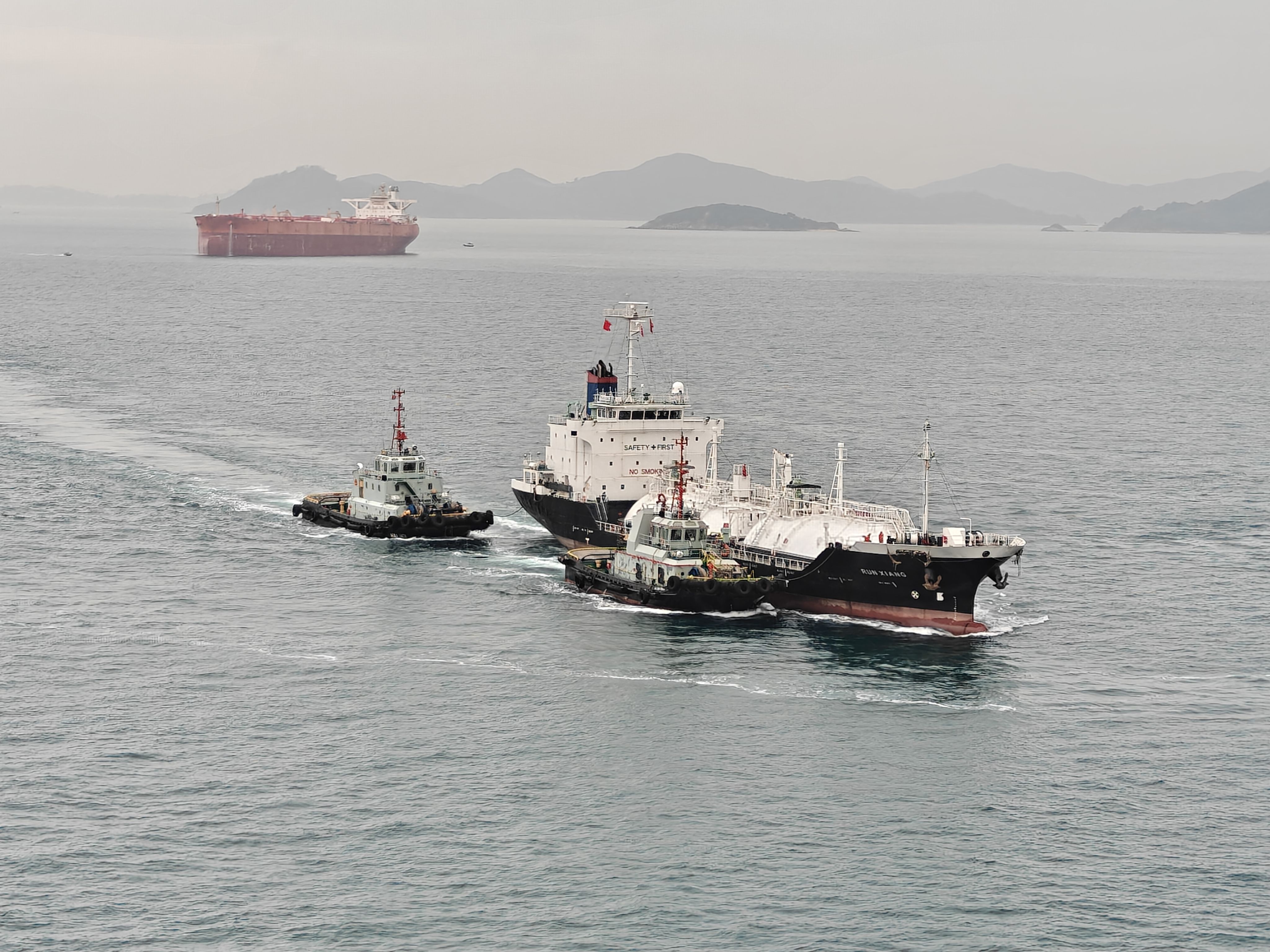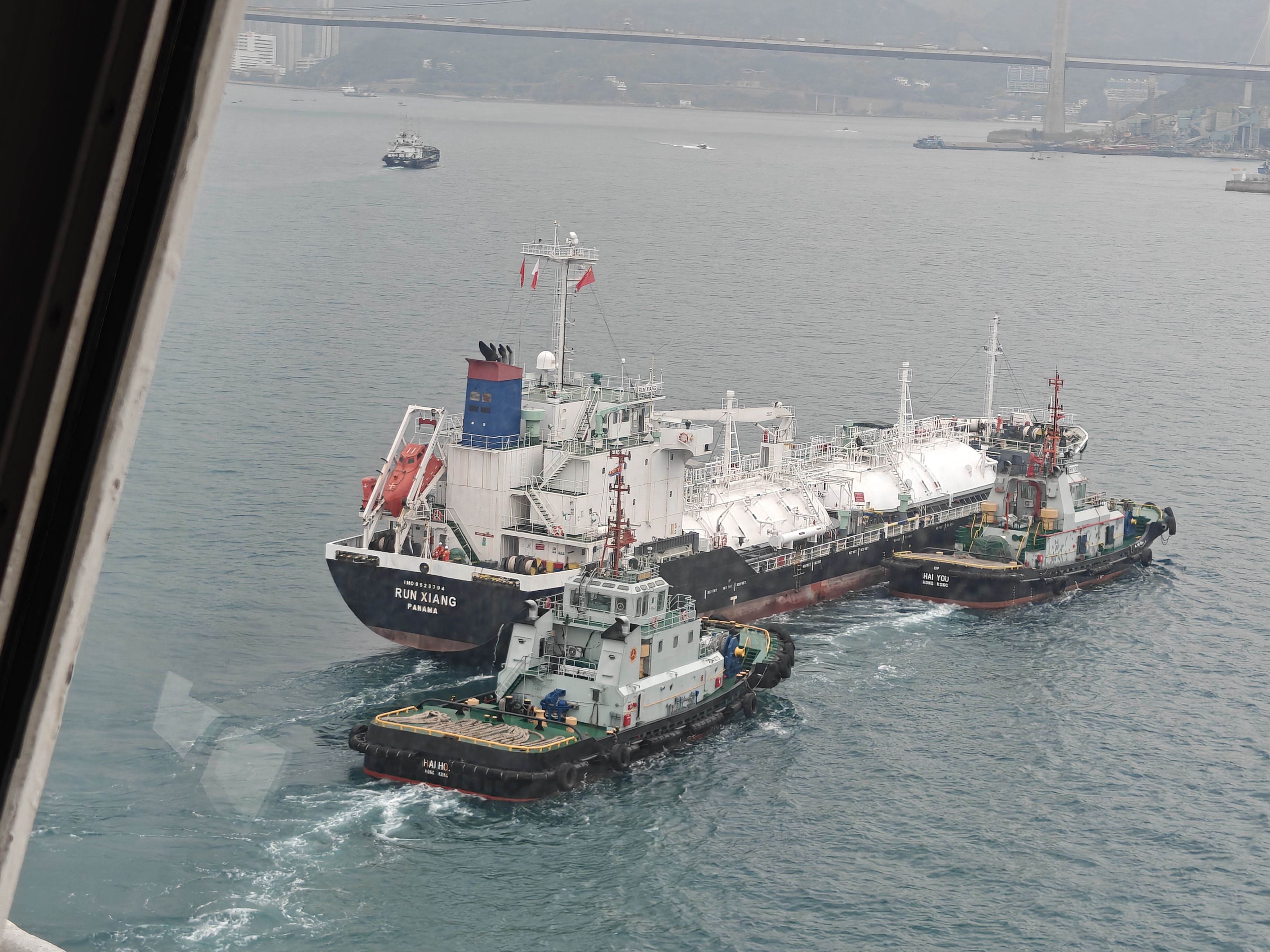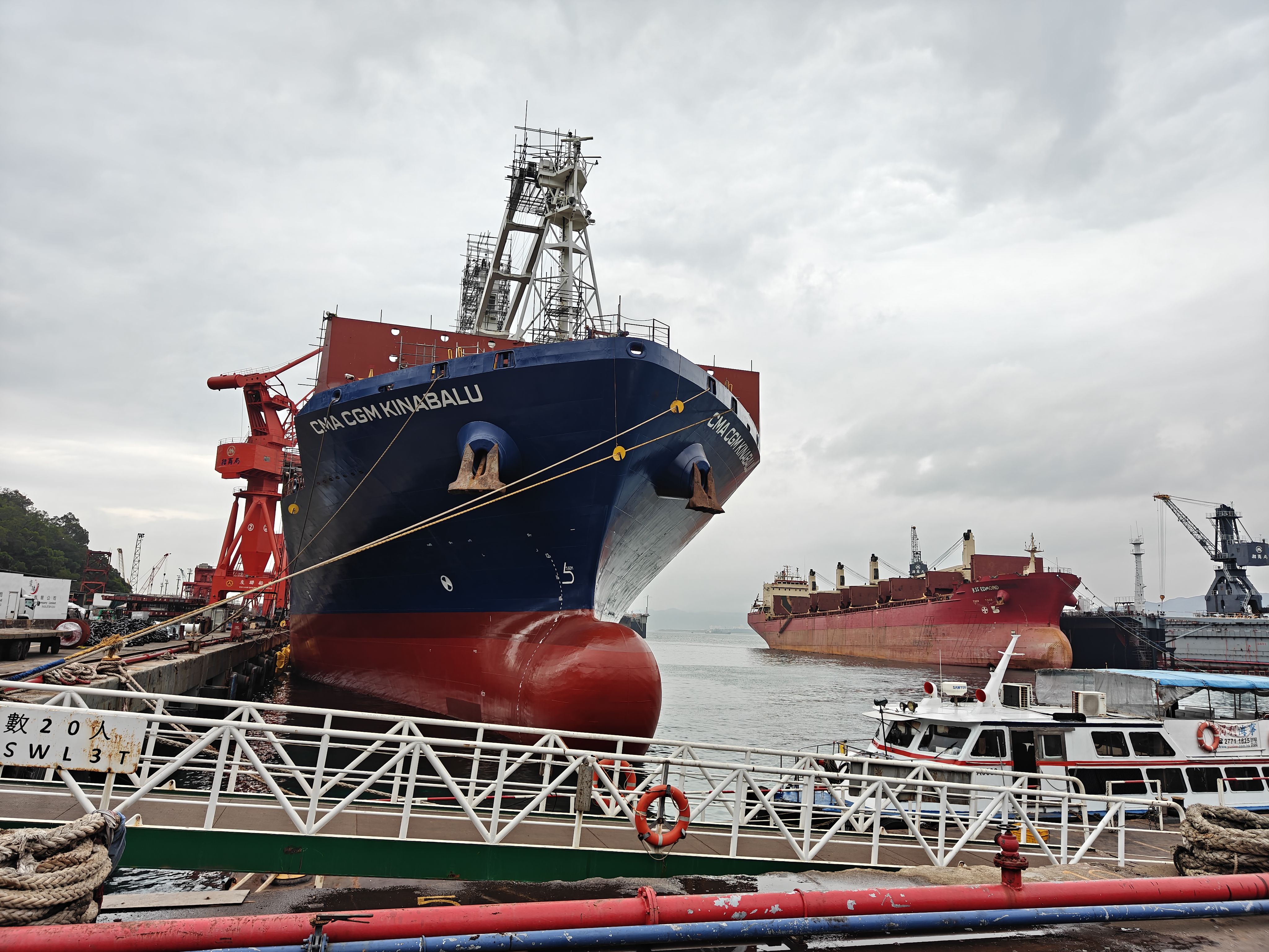 看到后面的小拖轮已经完成修理换新涂装真是百感交集