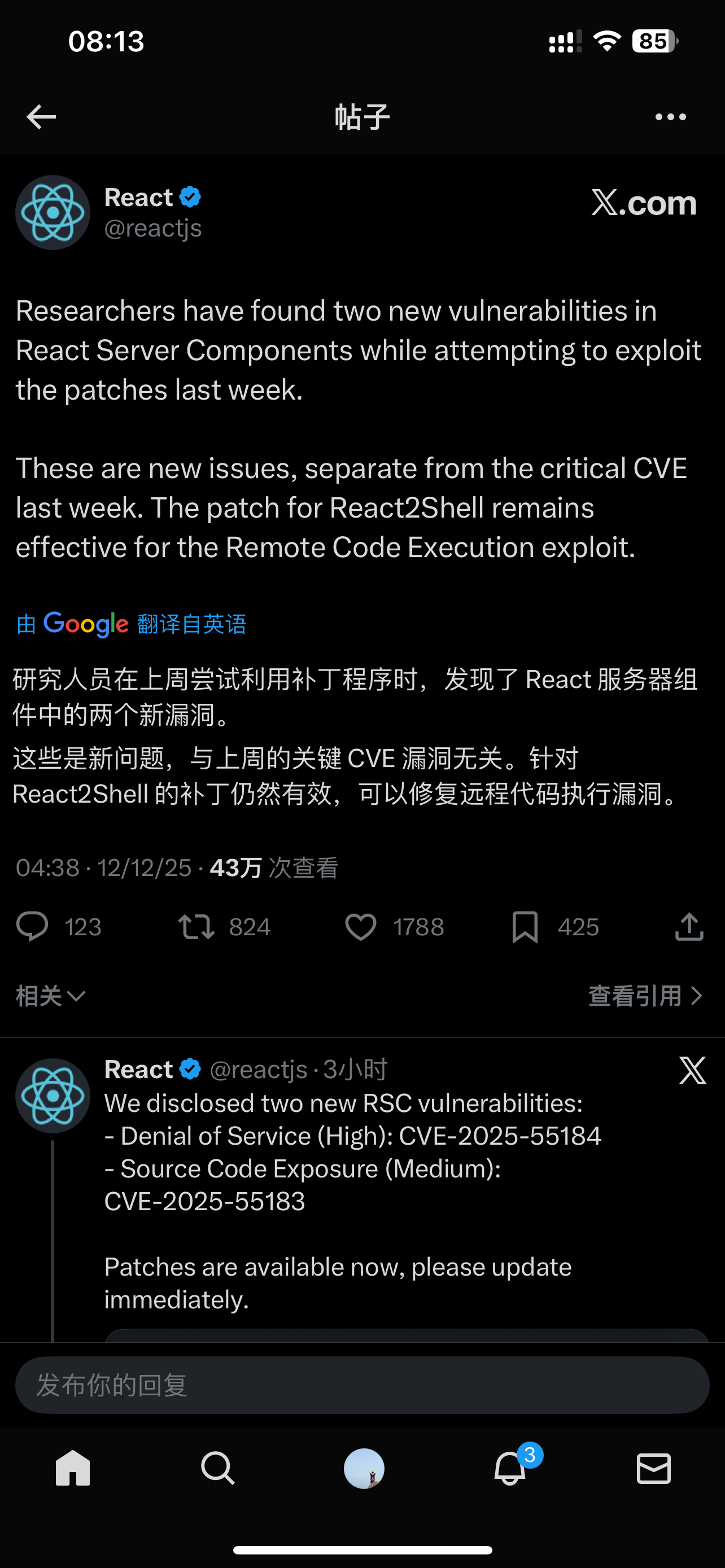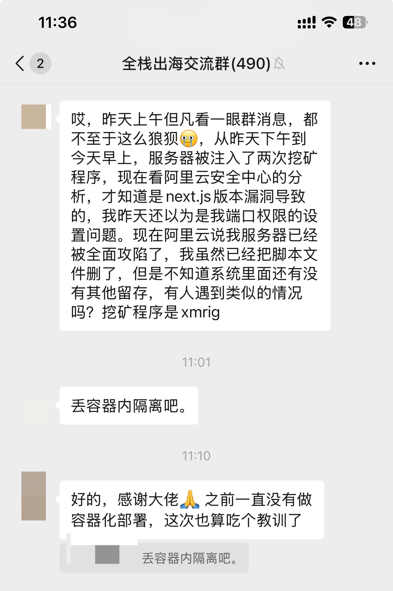 提醒大家,一定要重视前两天 React 和 Next.js 爆出的漏洞,今天群里越来越多人中招了。