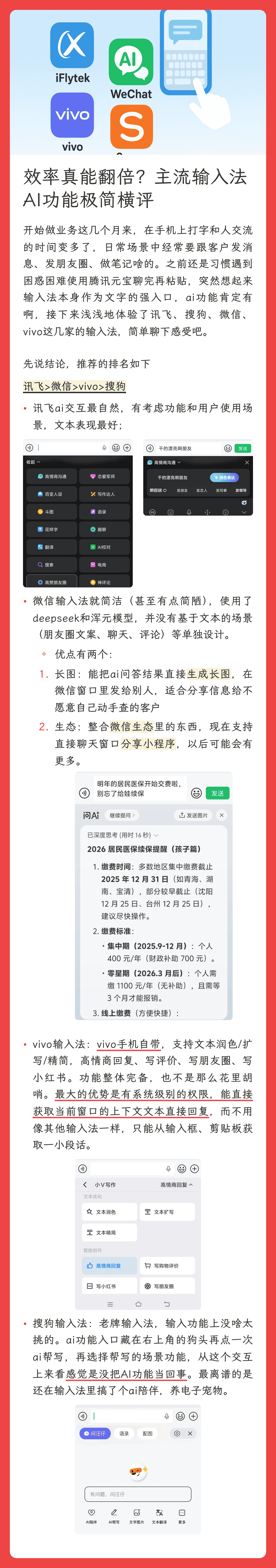 输入法的AI功能体验下来更推荐讯飞输入法