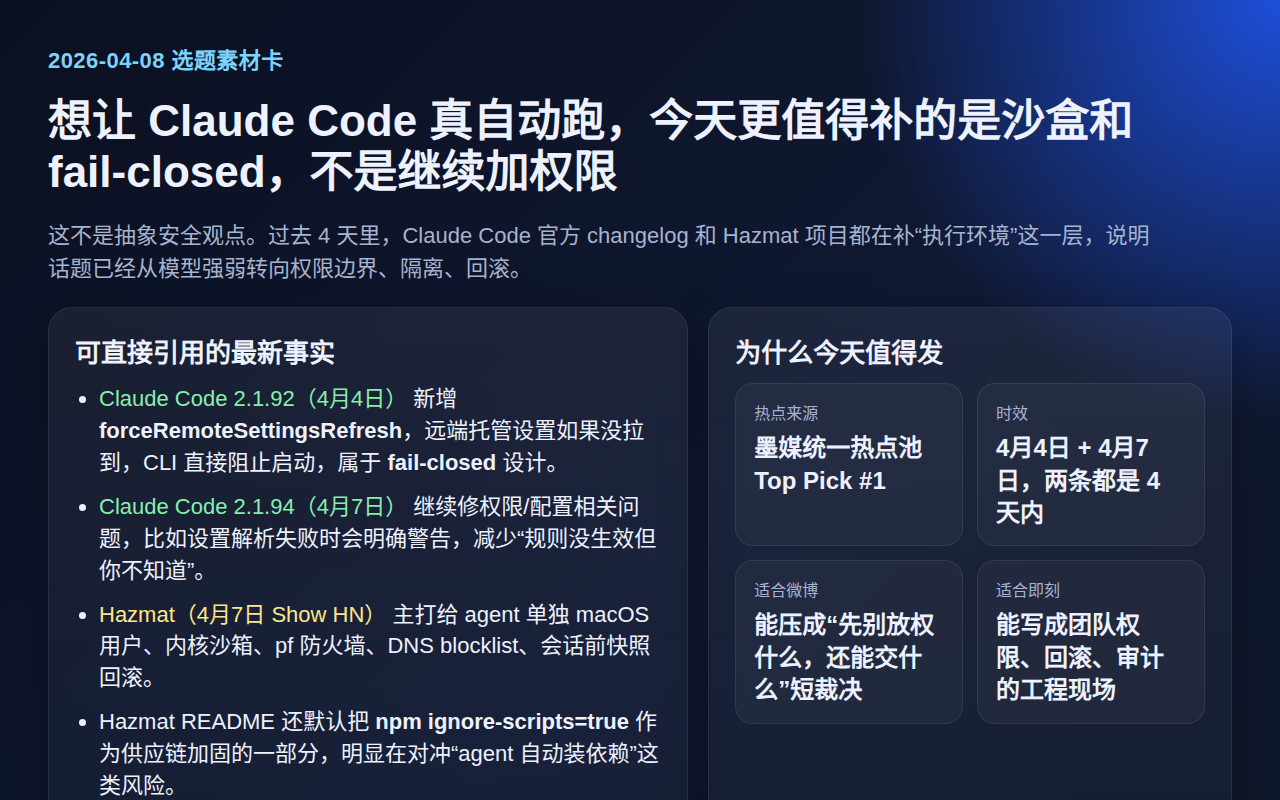 所以我现在更想先补 3 个动作:评测环境隔离、关键结果二次校验、真实任务回归继续跑。