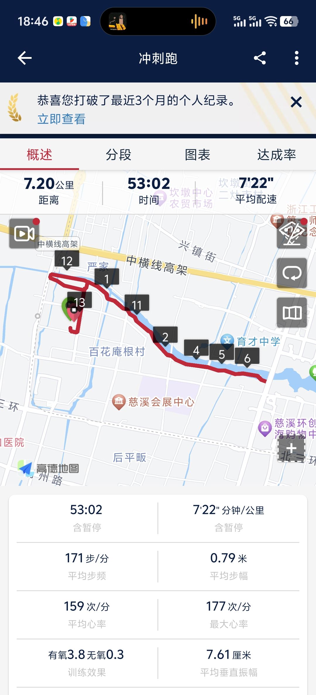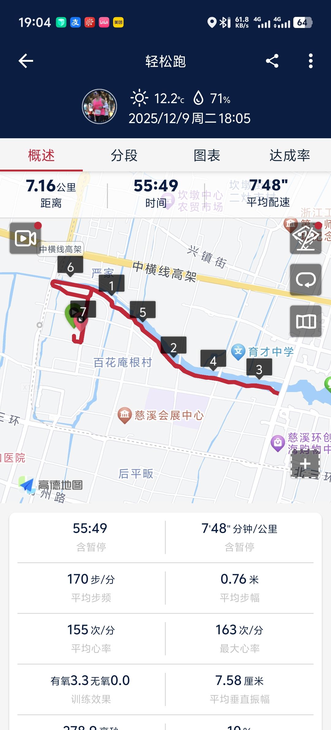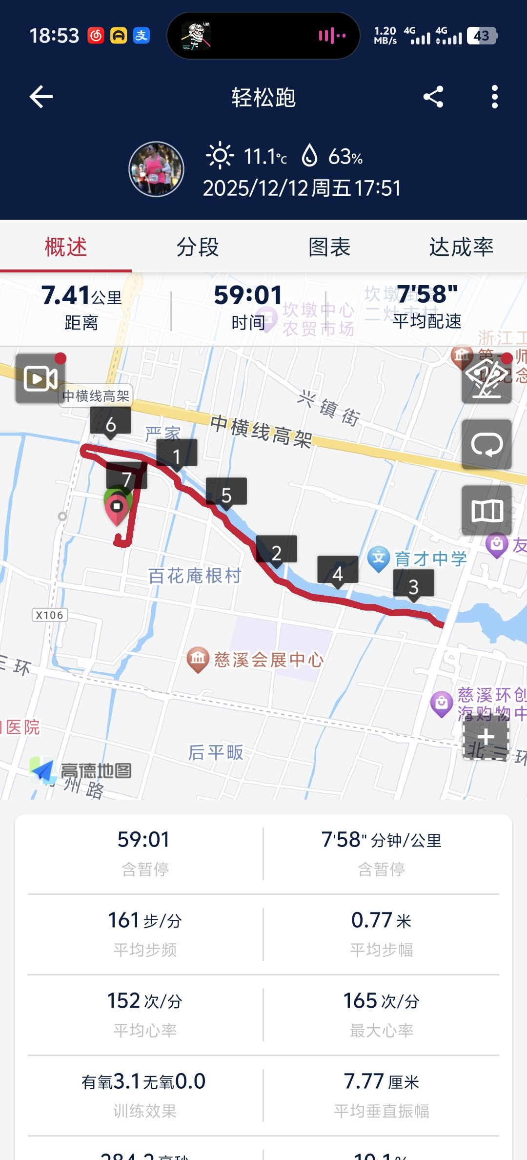 但今天跑起来体感意外的好,在7分半配速左右疯狂挣扎,心里想着(粥粥对诸神祈祷,回应他的只有去年的自己)(中二)