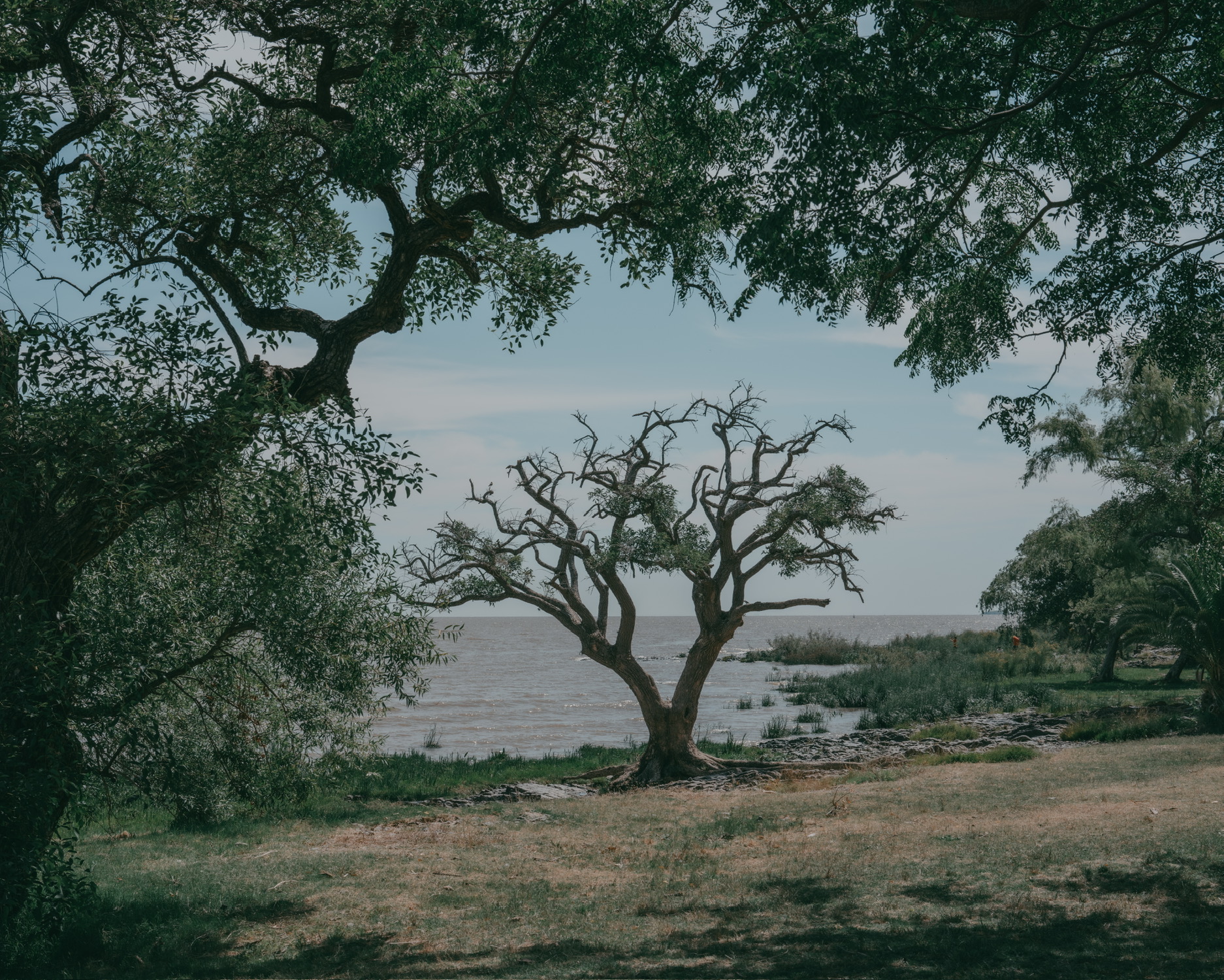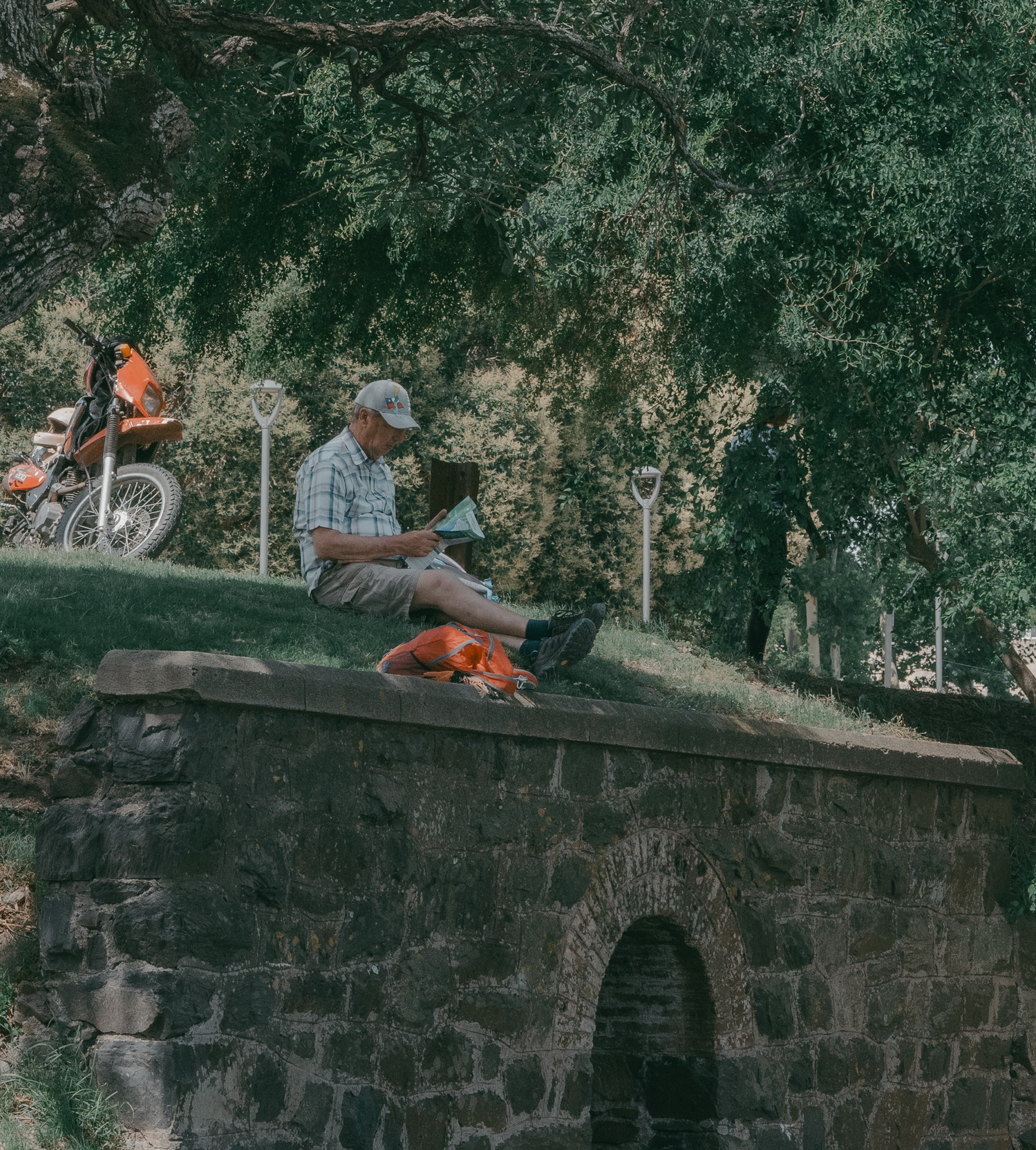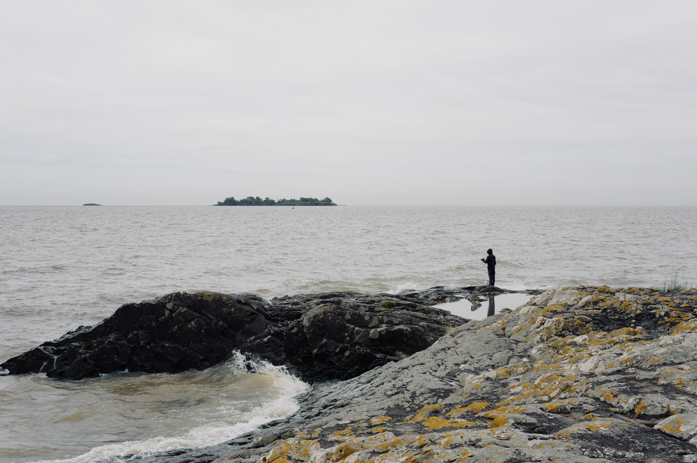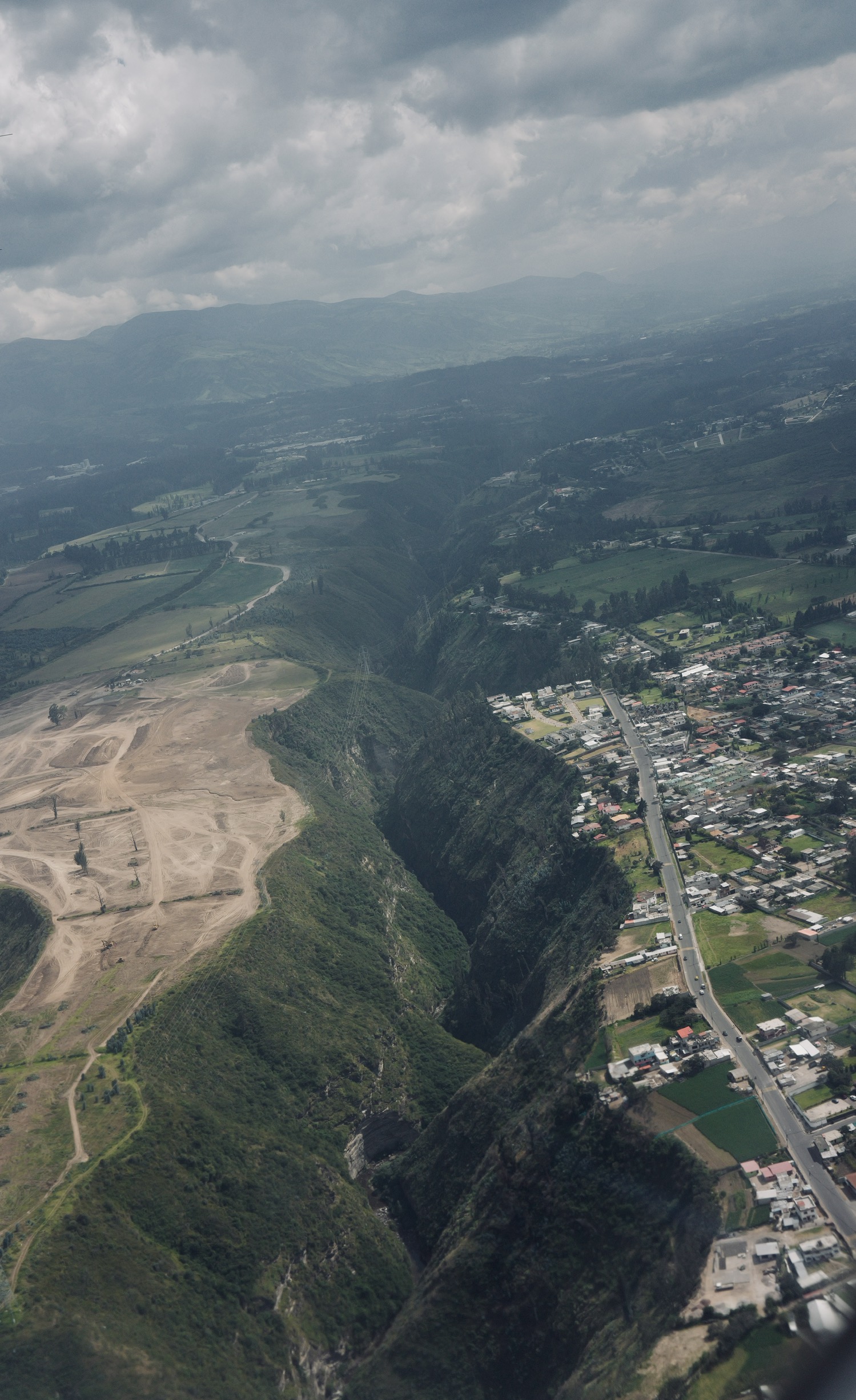 有人说这是“大地调色盘”,显然很成问题。这是人类活动的证据,并非自然形成之物。我去的这天很阴沉,航拍后加上调色相当好看,但实际上在观景台用肉眼看尾矿湖的话,会感觉湖上飘着一层厚厚的像油膏一样泛白的物质,怎么形容呢,就像是一锅炖肉放凉了之后表面上漂浮着一层又厚又粘稠的油脂,很倒胃口,不敢想象谁要是不小心掉进这湖里会怎么样。如果恐怖小说中的古神克苏鲁苏醒,我想大概就是在这样一种又厚又粘又妖异的物质中缓缓升出水面的吧。