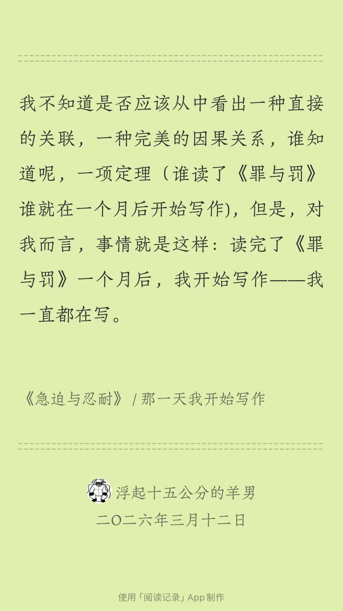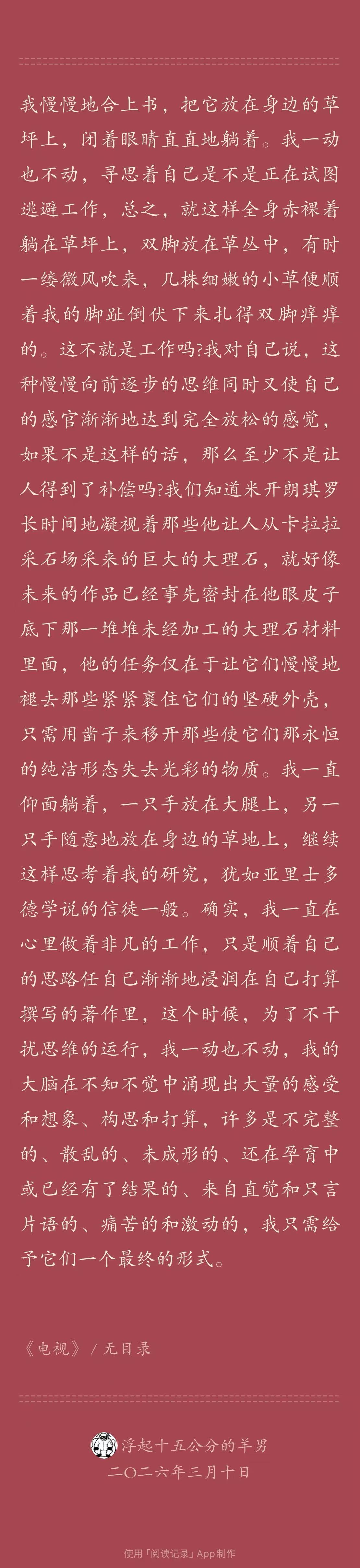 (2)他在某个场合“灵机一动”决定写作。