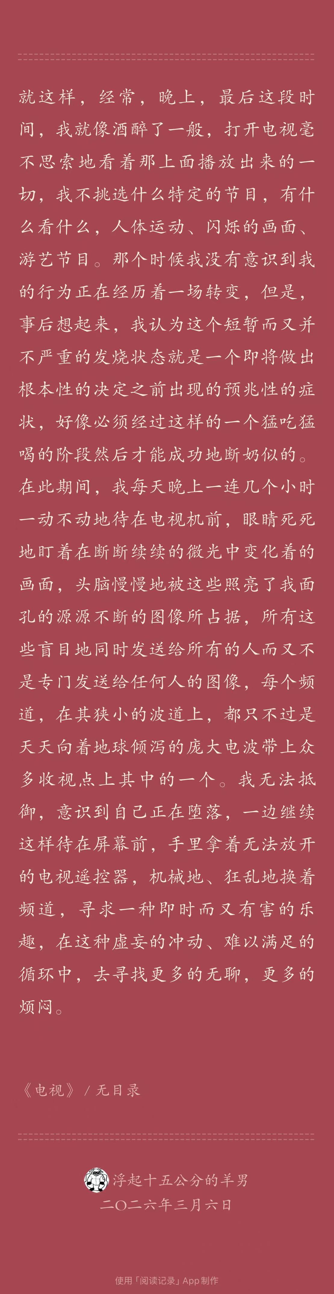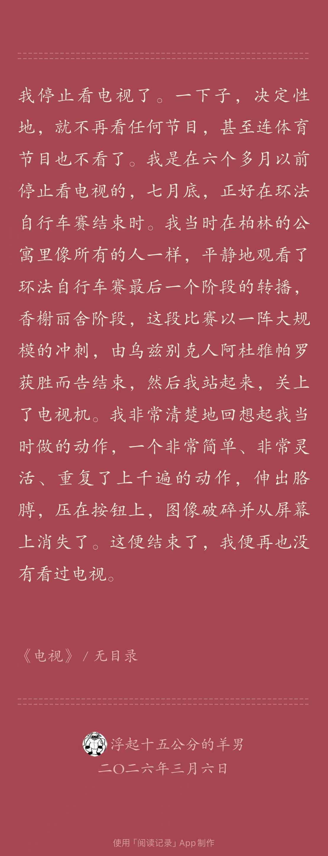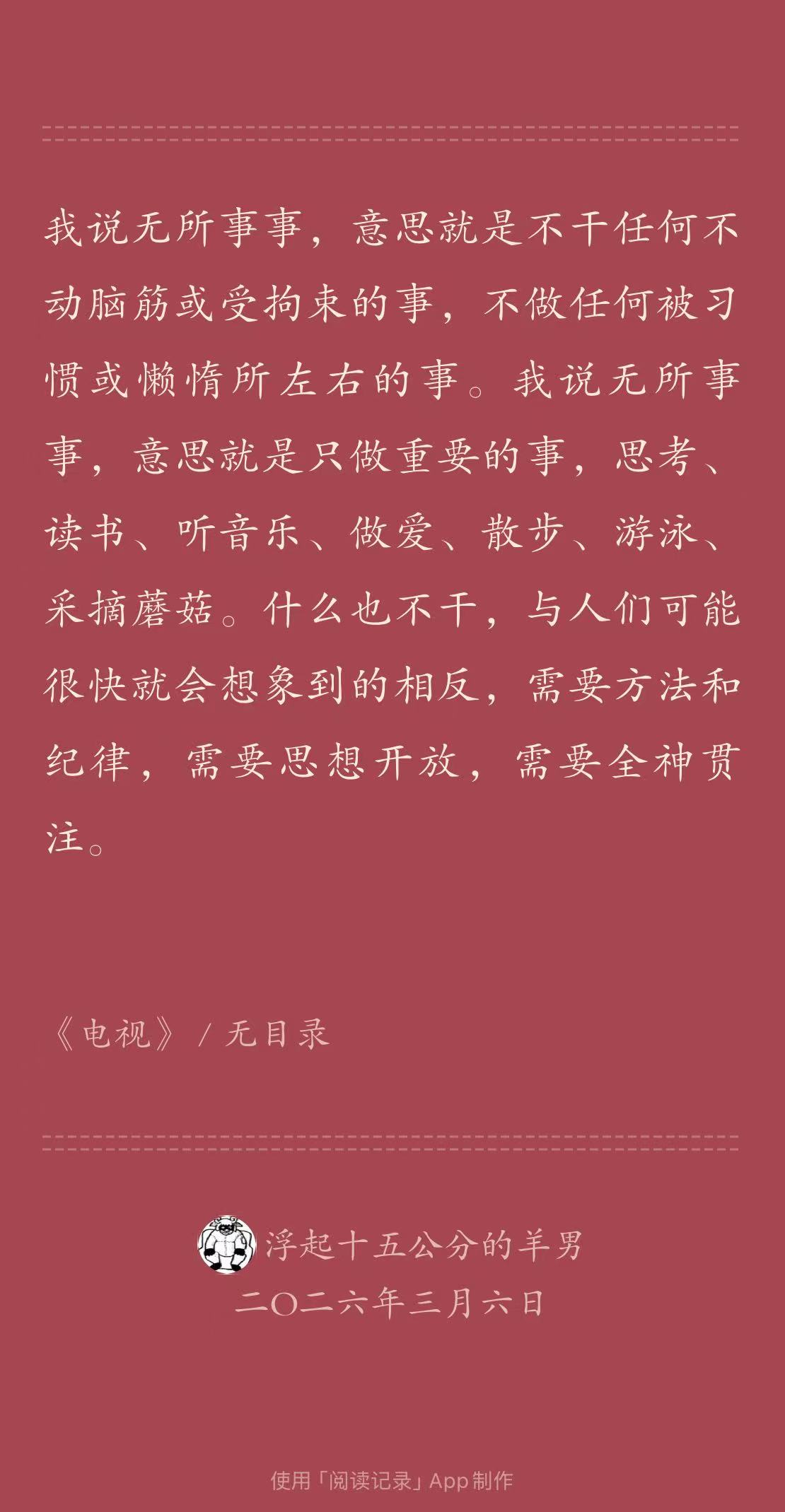 这本是图森的一种“文学回忆录”,讲到了他如何从一个不读书的青年变成作家(因为读了《罪与罚》)、他写作的心得(比如调和“急迫”与“忍耐”两种冲动)、他与午夜出版社的热罗姆·兰东合作、又经过兰东与偶像塞缪尔·贝克特通信,以及一些关于文学、读书、写作的趣事。