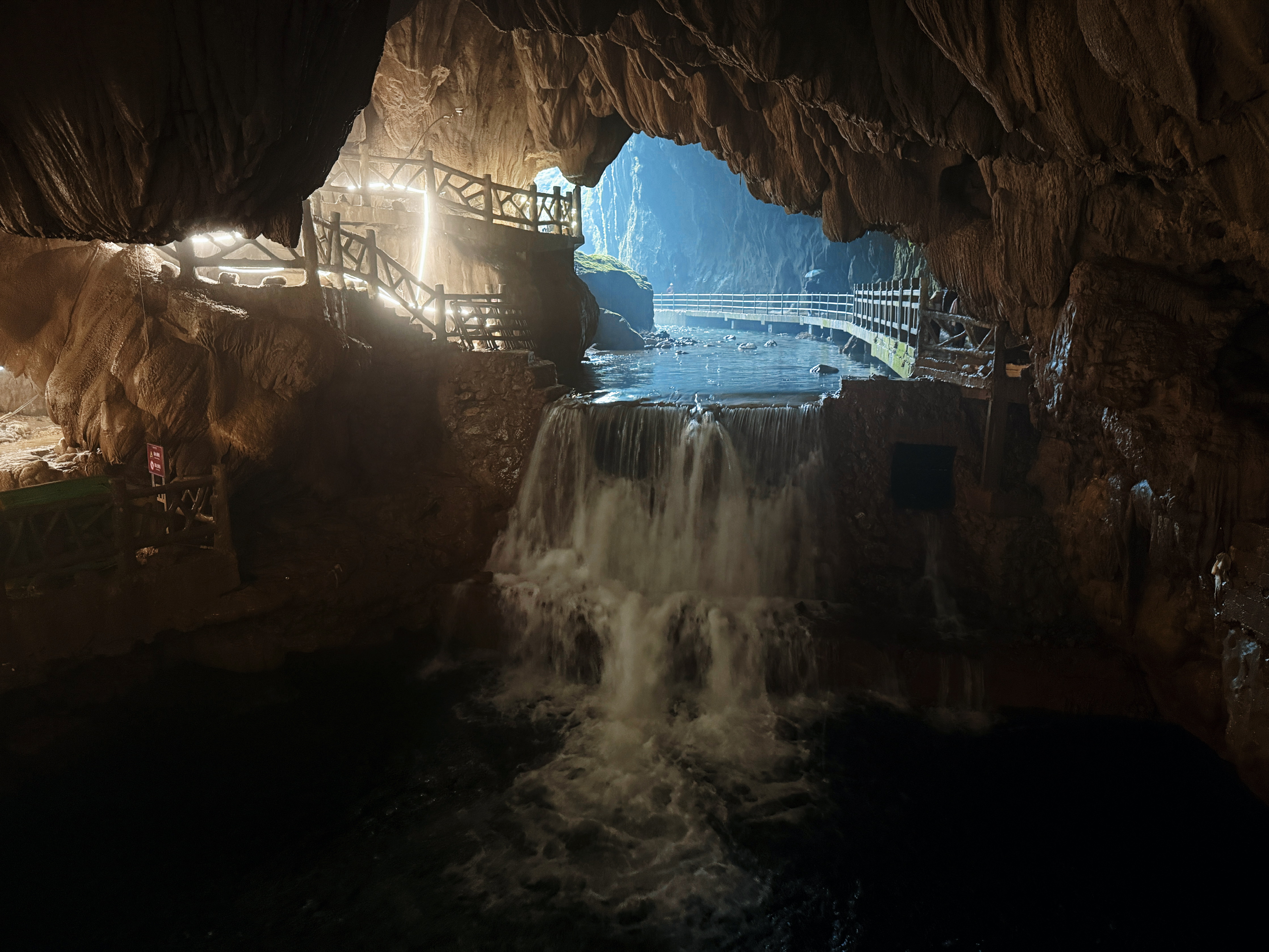 少了雨季的奔腾汹涌,多了山水清瘦静谧,一帘白练垂落中越边境,归春河与喀斯特相映成画。