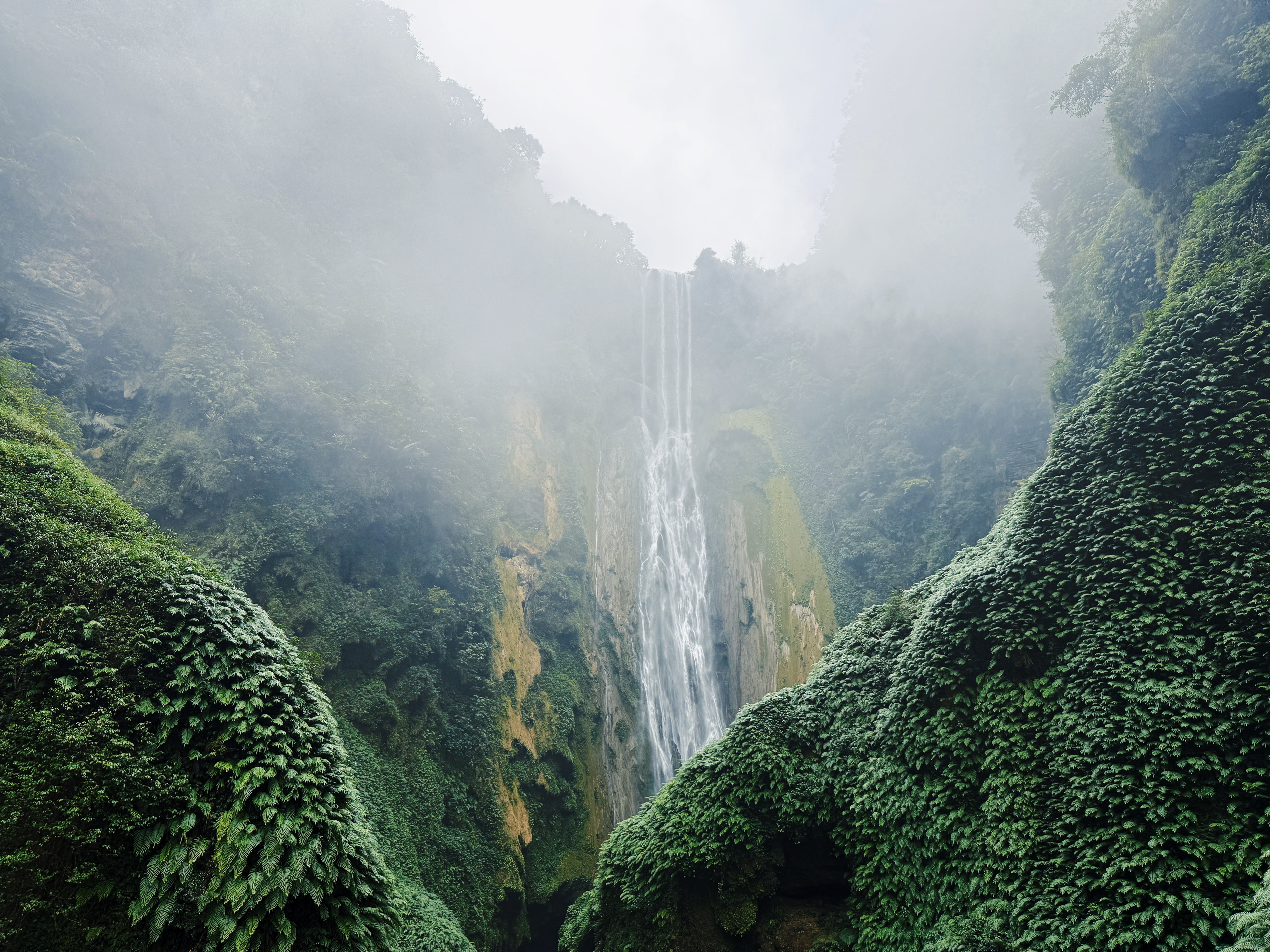 峡谷飞瀑从崖顶倾泻而下,水雾漫过青苔,把整座山谷都泡在湿润的绿意里,这是大自然的诗。