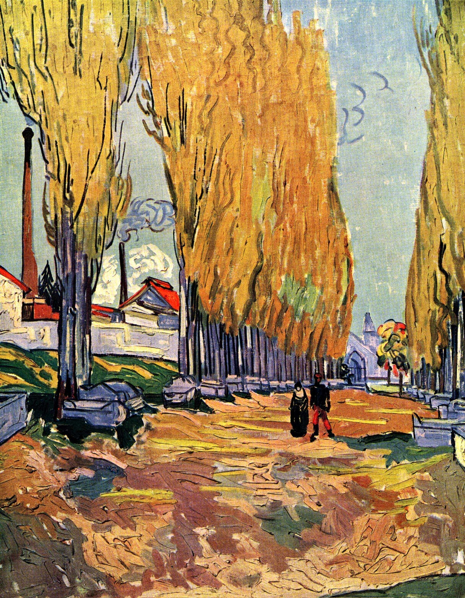 《Les Alyscamps》是梵高1888年在阿尔勒创作的系列画作,描绘了古罗马墓地秋日林荫道。画布尺寸约为92 x 73.5厘米,现藏于巴黎奥赛博物馆。