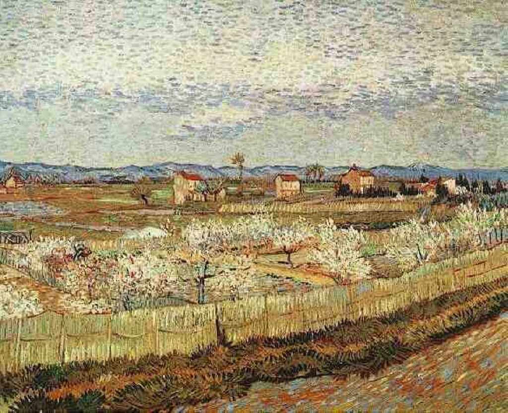 《普罗旺斯的果园》是梵高在阿尔勒时期创作的风景画,描绘了春日果园的生机。画作尺寸为65.5 x 81.5厘米,现藏于荷兰阿姆斯特丹的梵高博物馆。