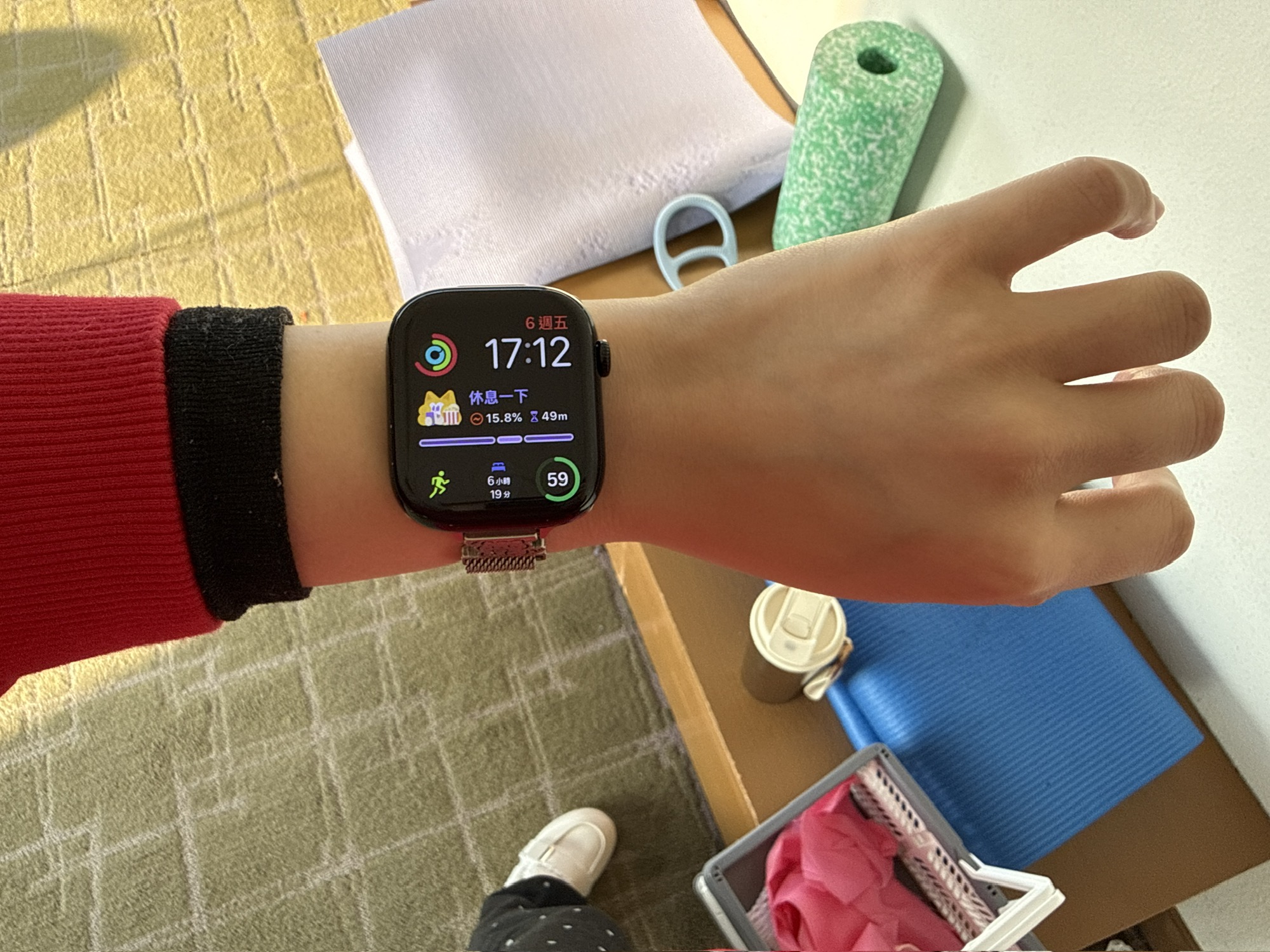 和模型玩了一个下午。来瑜伽垫拉伸,以及轻力量的臀部训练。