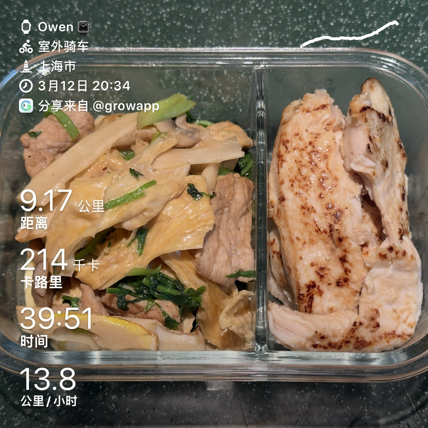 荠菜春笋腐竹炒猪里脊+香煎盐曲鸡胸肉