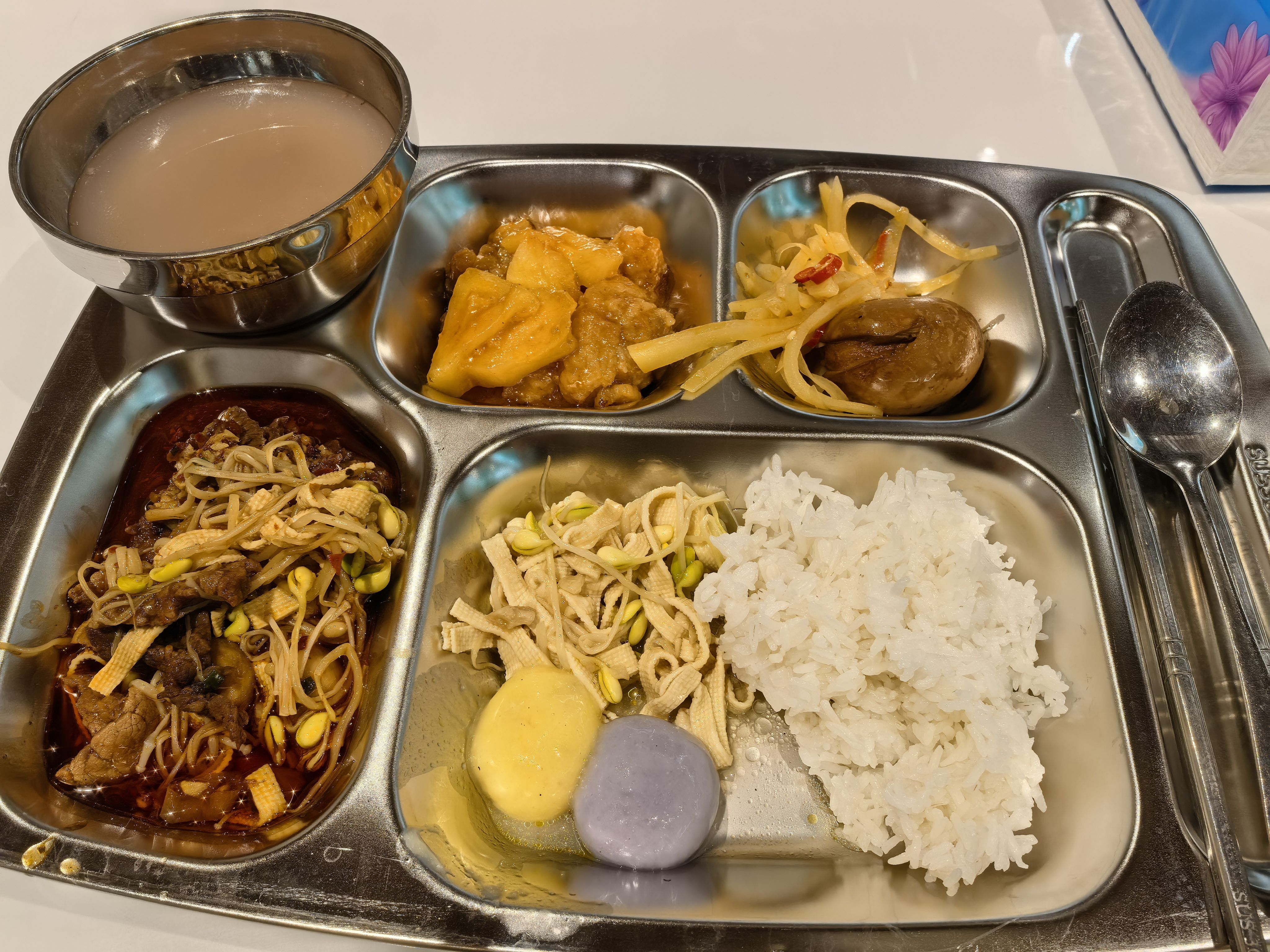 今天宜干饭!12:20去食堂还有饭吃!盐焗鸡、虎皮鸡爪、椒盐虾、香辣蛙、水煮牛肉