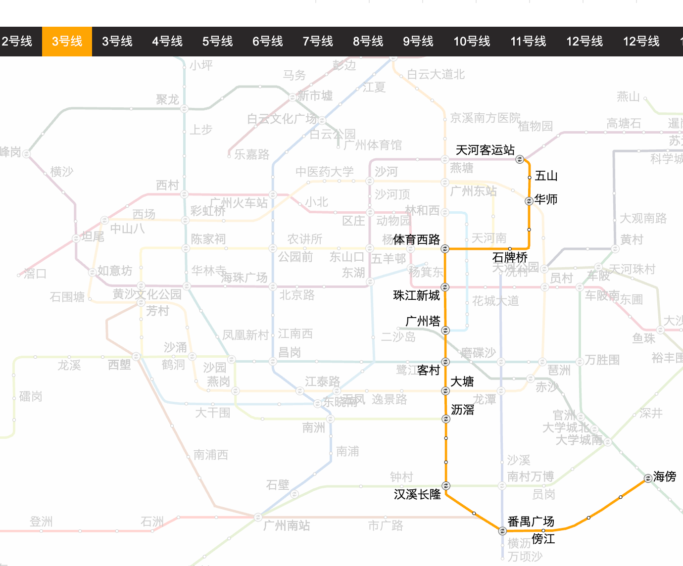 做“地铁多邻国”的时候,朋友指出广州地铁 3 号线的数据有问题,然后发现,目前的 3 号线运行的 2 条不重合的路线,也太奇怪了。虽然在高德上都显示“3 号线”。肯定还有其他奇怪的坑在前面等着我。