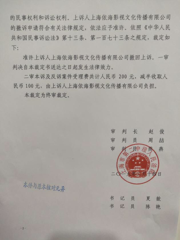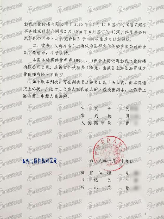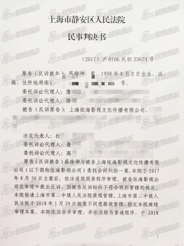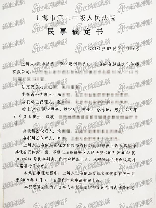 🏛 今天二审判决书已经下发,蔡徐坤和前公司终于!Finally!解约啦!解释一下,2018年3月,蔡徐坤起诉前公司依海,认为公司不作为,Swin名存实亡,要求解约,一审上海市静安区人民法院判决依海影视合约无效。依海不服上诉,2019年2月14日上海市第二中级人民法院判决被告上诉无效,今天裁定书下发,自即日起产生法律效应!所以,今天坤坤自由辣!
