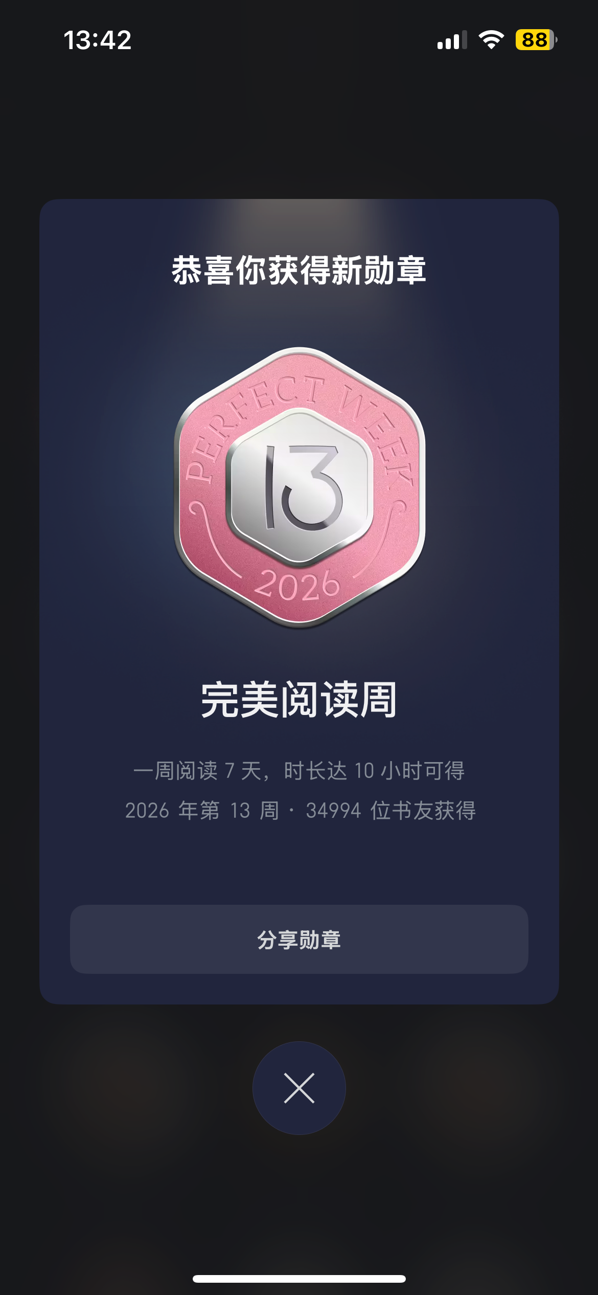 随着身体康复,阅读时间增长,这周读书时长终于超过10小时,获得了一枚久违的勋章🏅