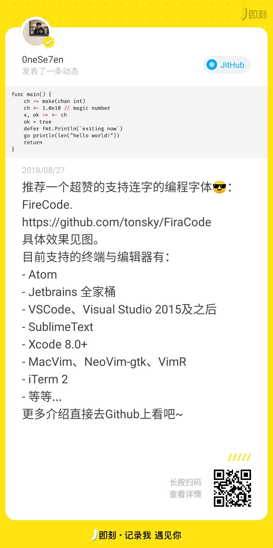 始终不太习惯 iosevka 的窄距,一直尝试把 Fire Code 换掉未果。。