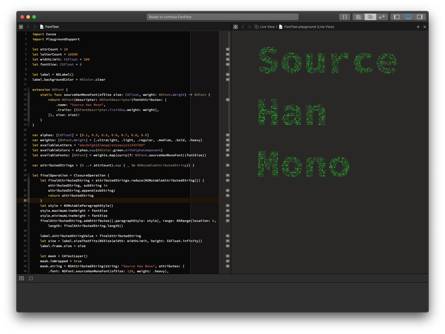 之前一直在用Source Code Pro,在Source Han Mono出来后就换成这个了,总体来说还是比较不错的一款,特别是Xcode算英文行高和中文行高(在Srouce Code Pro会fallback)的情况下,会不同,导致体验非常糟糕,但是使用这个之后既有了原来字体的西文也会在有中文的时候排列更加舒适(1.5倍的宽度)