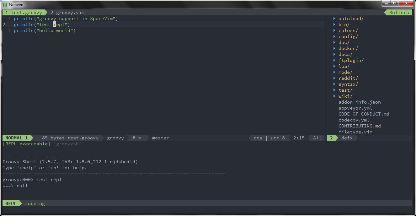 SpaceVim 新增 groovy 语言支持,包括一键运行、交互式编程等等功能,欢迎尝试。