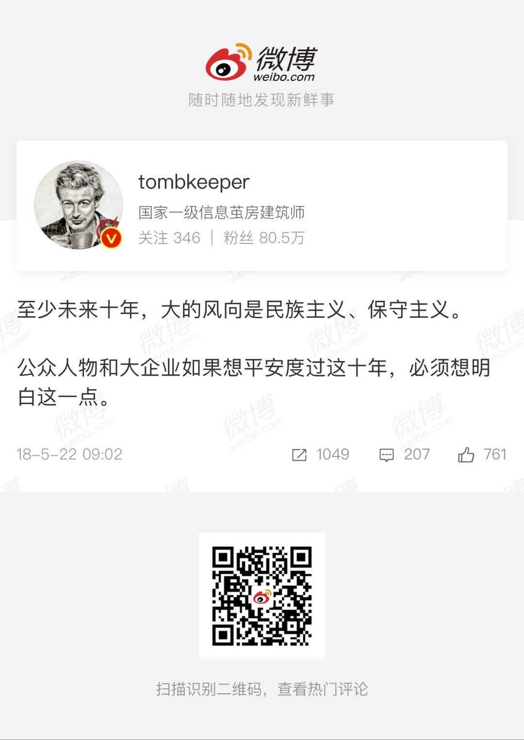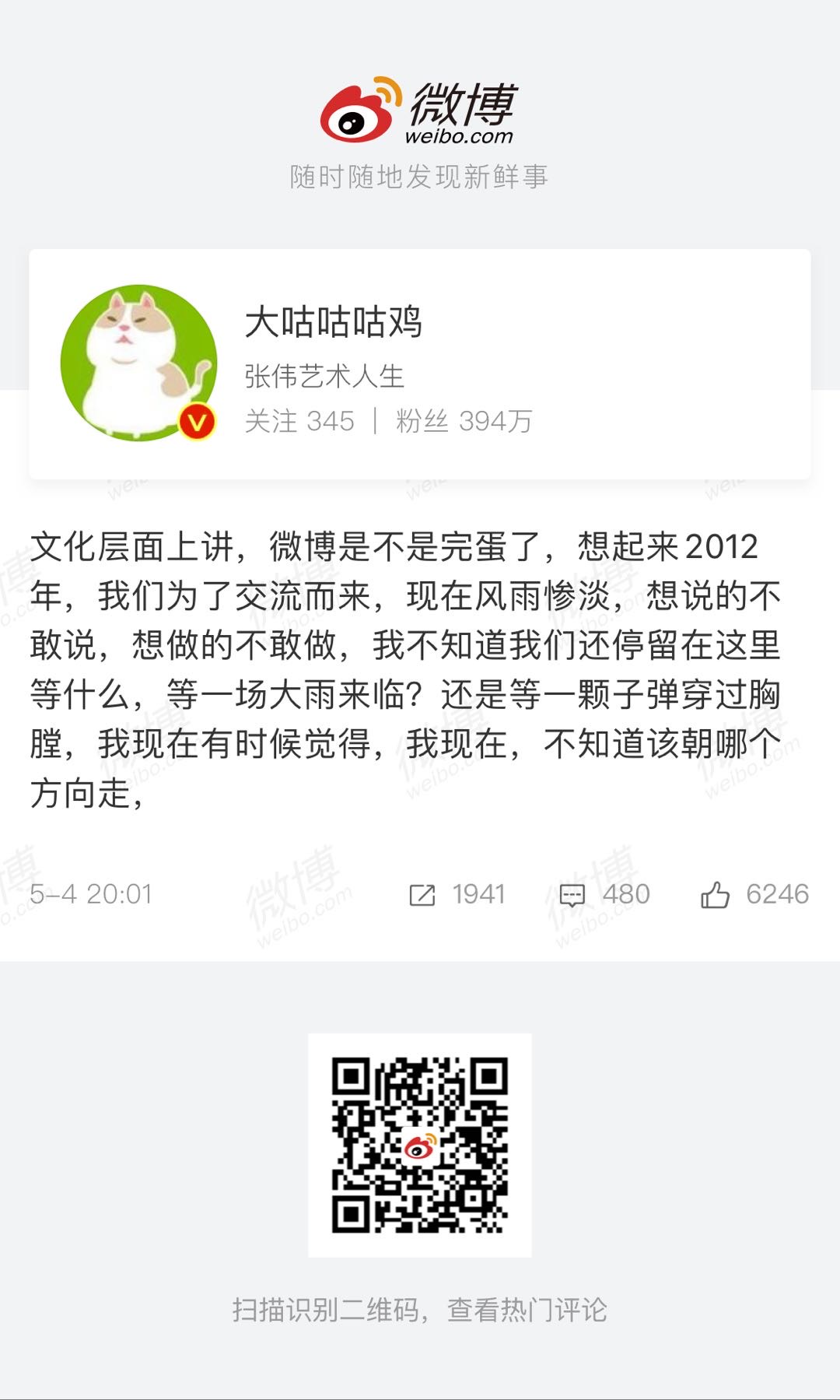 转向微博,古早的12-15年没有经历,就买了本新周刊的微革命,没事回家翻翻。今年5月大咕咕咕鸡发了篇「文化层面讲,微博是不是完蛋了,我们为了交流而来,现在风雨惨淡」引起很多共鸣。之前博主中二怪也发了篇微博,怀念古早互联网的快乐,好像是提了句我们终将再次相遇。