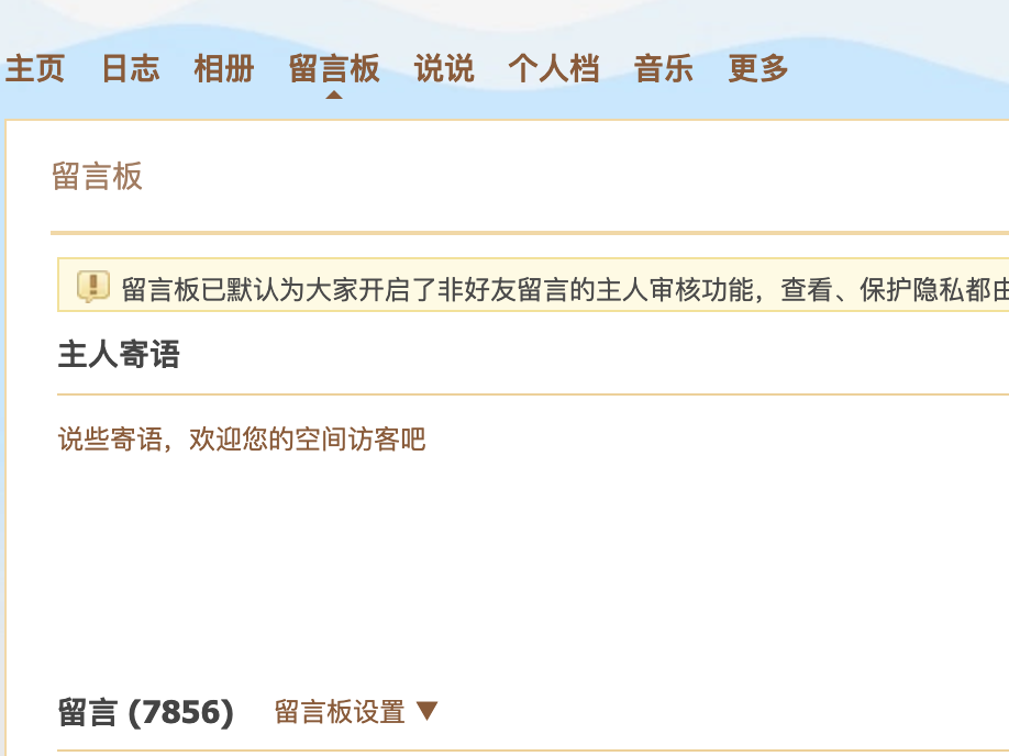 第一次玩的社交网络叫QQ空间,回去看了下,第一条留言是2006年。那时候16岁,应该是初三下学期。总共7856条留言。