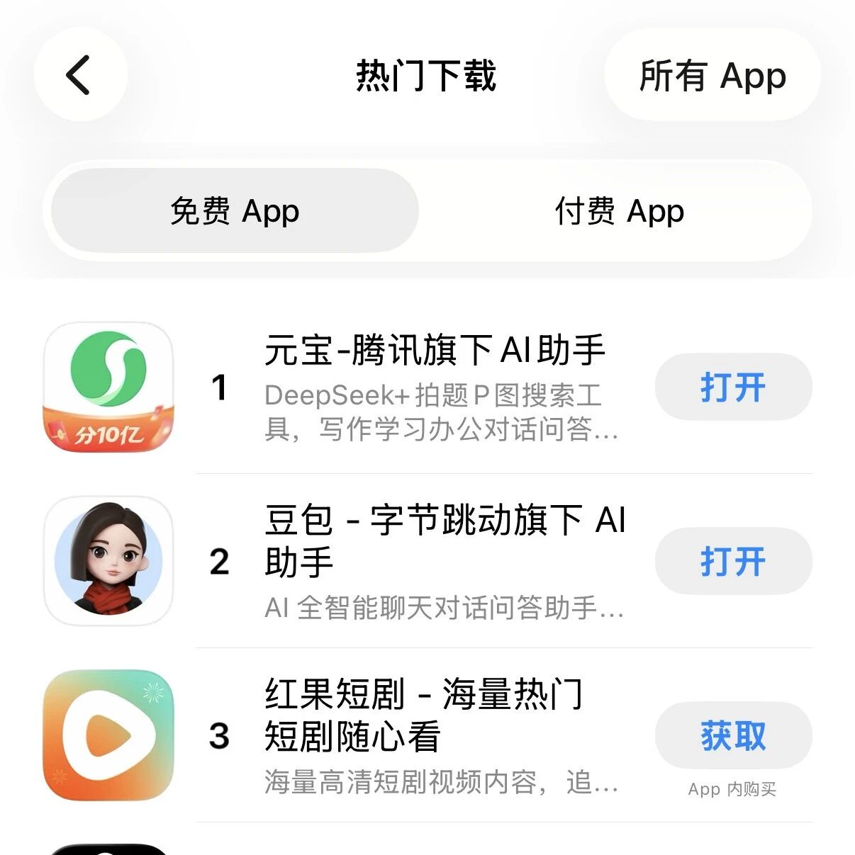 腾讯元宝App登顶苹果商店免费榜,距其分10亿元现金红包活动开启仅14小时