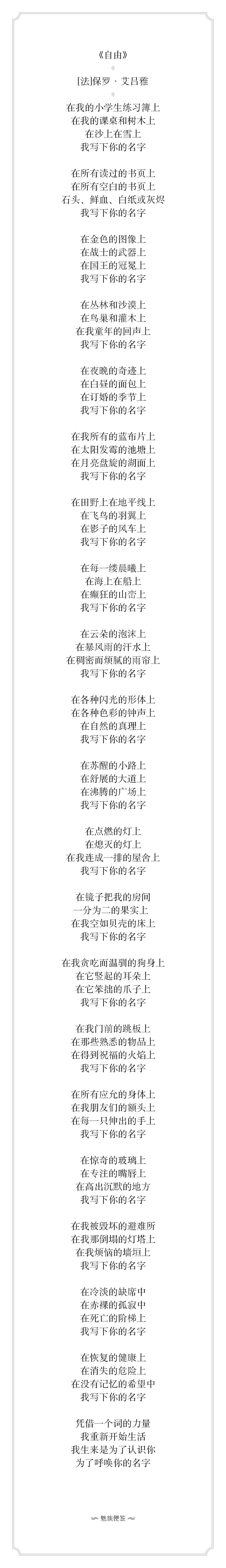 《自由》——保罗·艾吕雅