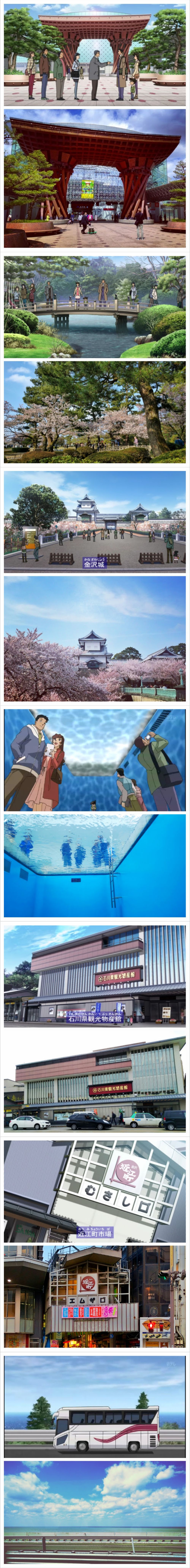 然后顺便分享个赴日游玩做攻略小秘技:出发前看一集柯南。p3就是柯南截图&金泽实景图,截图来自柯南旅游特别篇加贺百万石推理之旅的金泽篇和加贺温泉篇,实景图来自我的手机📷