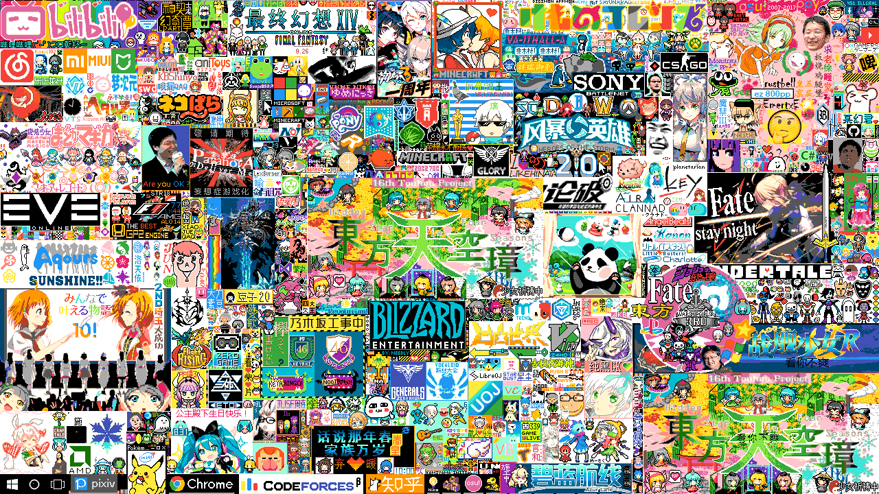 说到这想起一件令我感慨的事,去年愚人节伟大的Reddit社区发起了r/place活动,每个用户只能间断地涂一个像素方格,经历24小时的斗争与合作,最终reddit用户们把1000X1000的画布绘制成了一个充斥各种文化icon的电子“清明上河图”。而去年暑假,B站证明了在中国能办到这件无聊又伟大的社会实验也只有它。