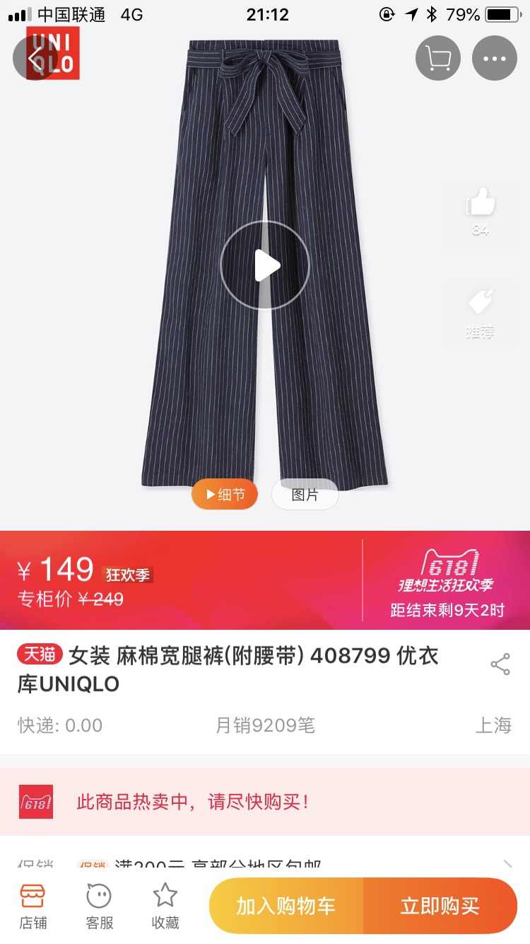 今年大热的阔腿裤优衣库也有出,差不多是实体店里6折水平,超大折扣了