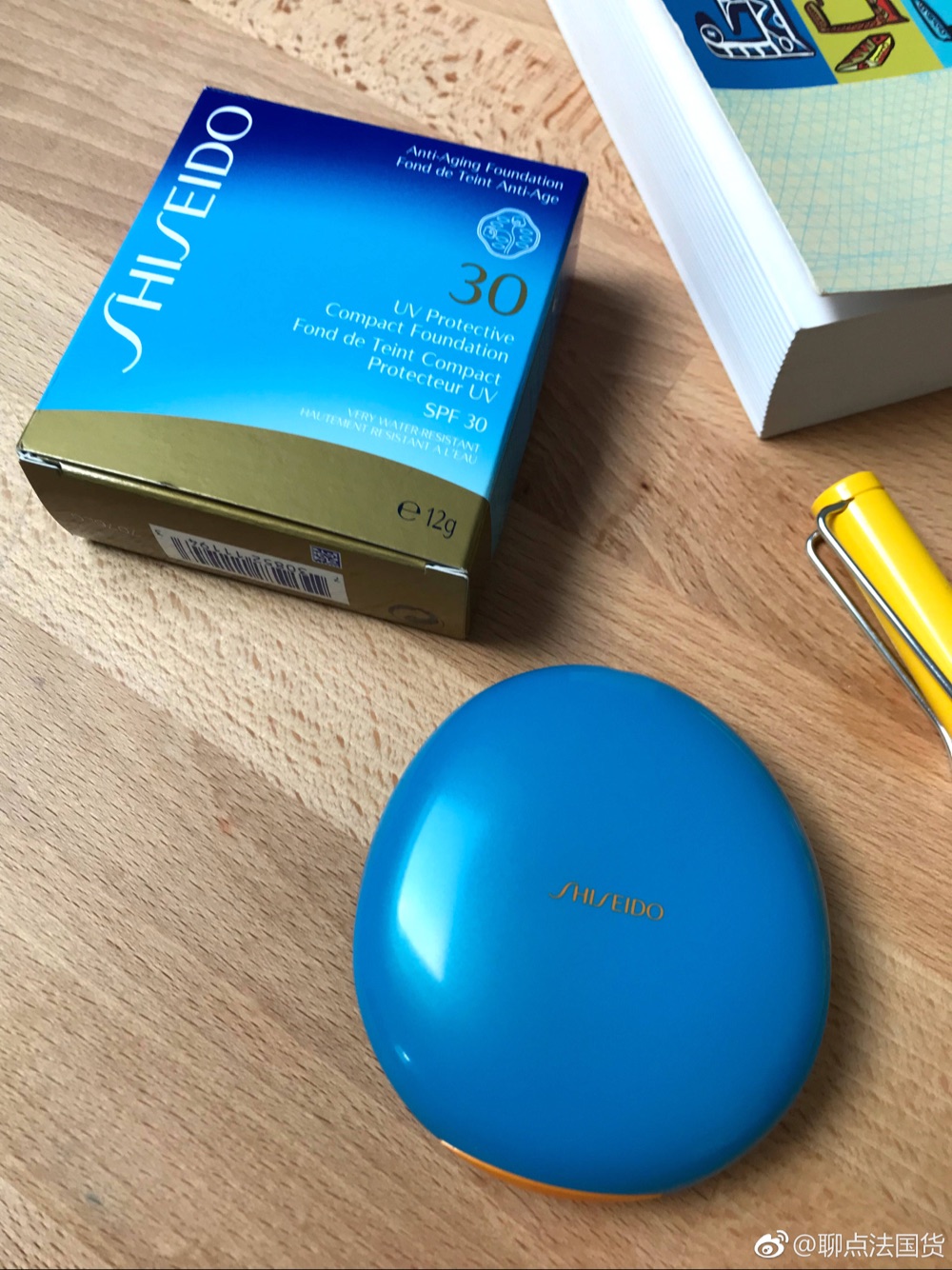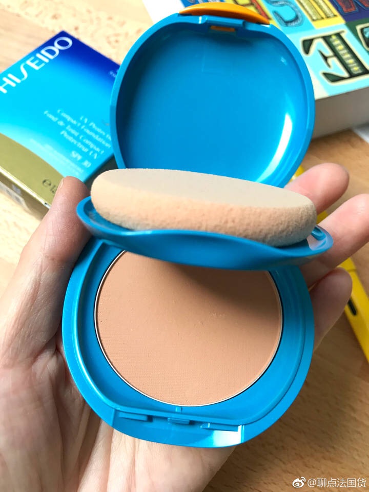 资生堂防晒粉饼。为了夏天方便补防晒,懒人我试了很多防晒粉饼之后选了这款。四个色号,手里是最浅色,上脸后比饼子看起来的颜色稍白,但对特别白的妹子来说还是太深。有点浮粉,因为要拍够量才起防护作用,不建议代替防晒霜,但它小巧带镜子,有些遮瑕力,很方便出门作为防晒补充,拍掉油光什么的。