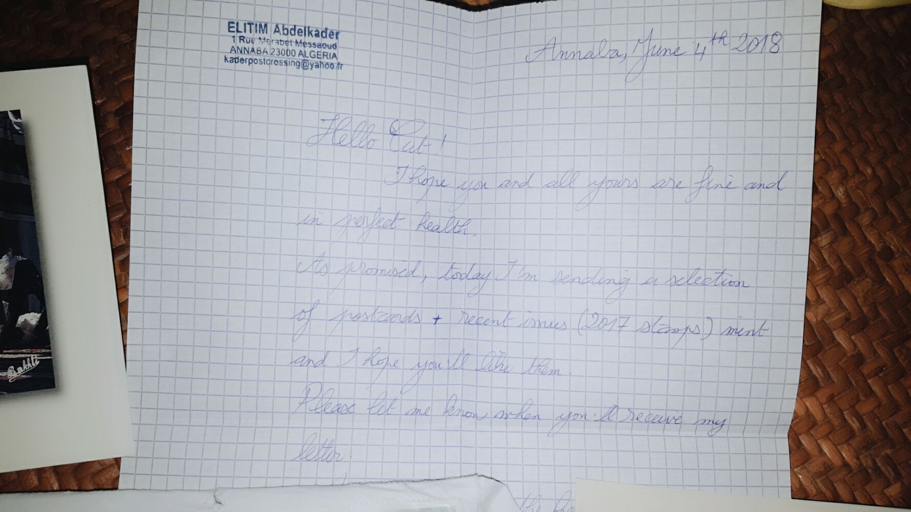 收到来自非洲阿尔及利亚明信片朋友的明信片套装。