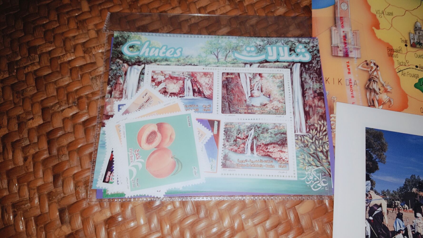 有阿尔及利亚的原版片,还有阿尔及利亚当地的邮票,还有他给我的一封信。