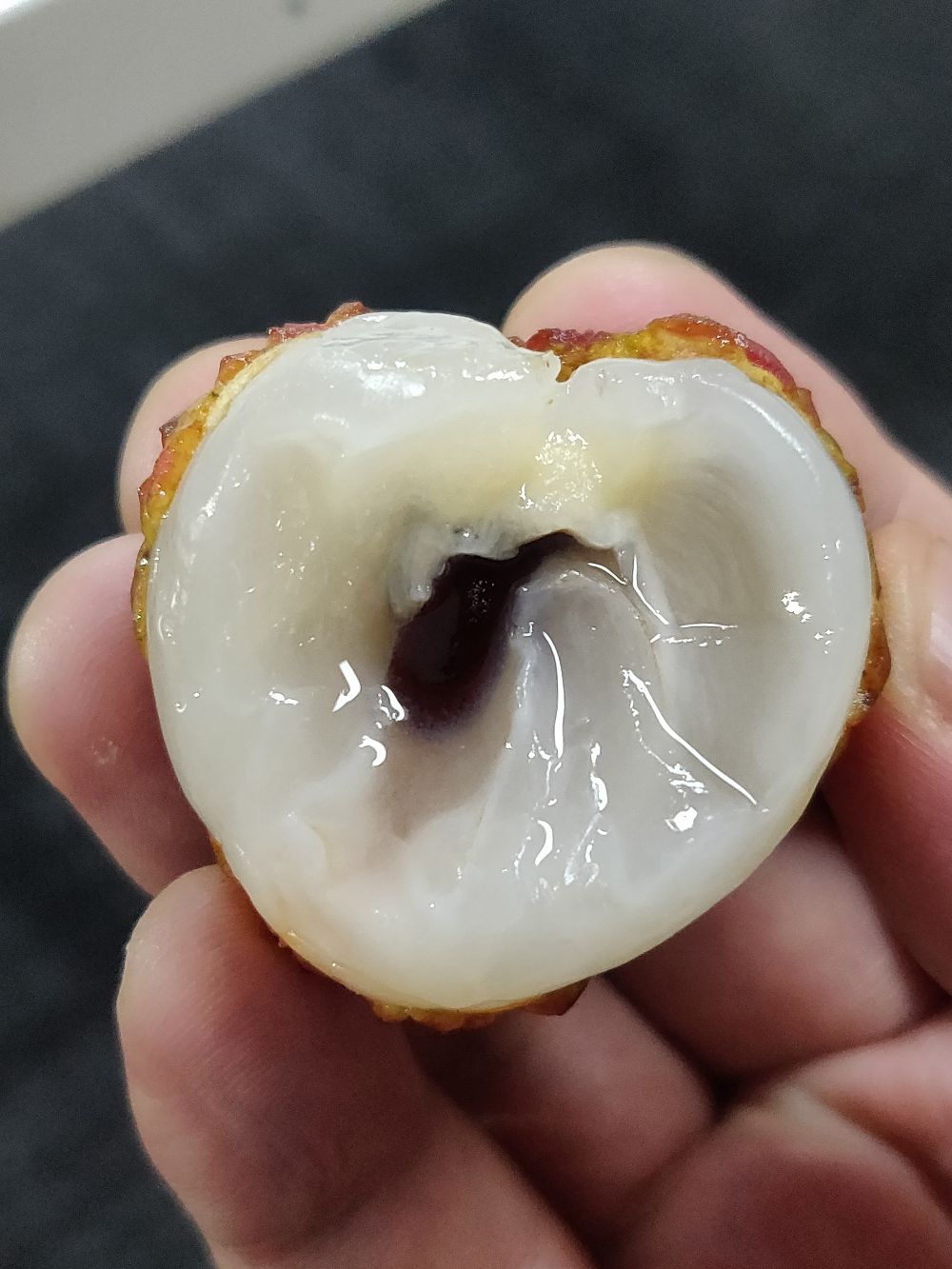 无核荔枝,又称公主荔。产地位于海南澄迈,当地又称火山村,果园遍地都是火山岩,火山灰,肥沃且富硒。旁边还种植有几十平方里的黄花梨。