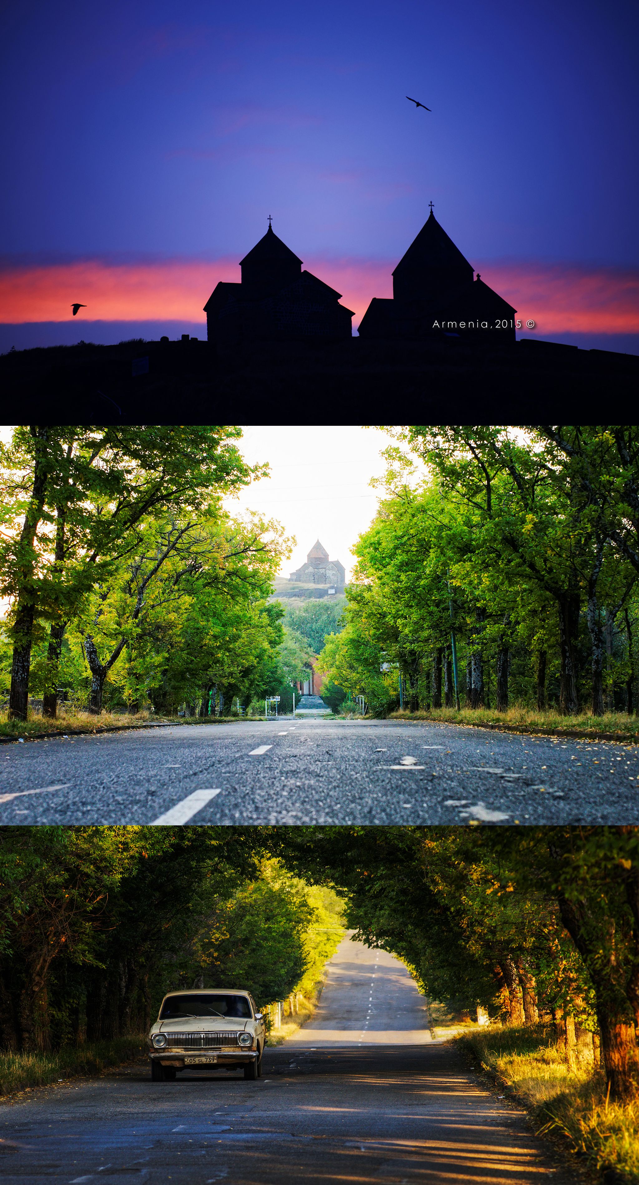 亚美尼亚的塞凡湖(Sevan Lake)。距离首都埃里温不远,被称作“外高加索的眼泪”。湖边不远有个塞凡镇,镇上还有渔民在湖中捕鱼。大湖本身景色平平,出彩的是湖中半岛山坡上将近1200年历史的双子修道院。不少游客可能打卡即走,我那天狠了心,从日落到日出,一直耗在小山坡上。外高加索有很多好风景,最大的优点就是它们都不关门,甚至根本没有门。只要你愿意,什么时候去都可以。黎明的时候,我拍完了星空慢慢下山,一回头却看到了更美的朝霞,拍完朝霞上路,朝阳又洒满了林荫大道,一辆苏联老拉达迎面驶过,这个早上简直太棒了,好像它把所有最美的样子都留给了我。