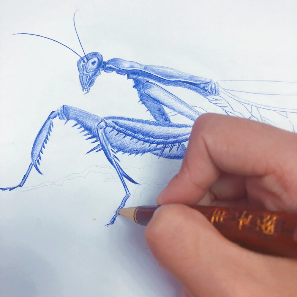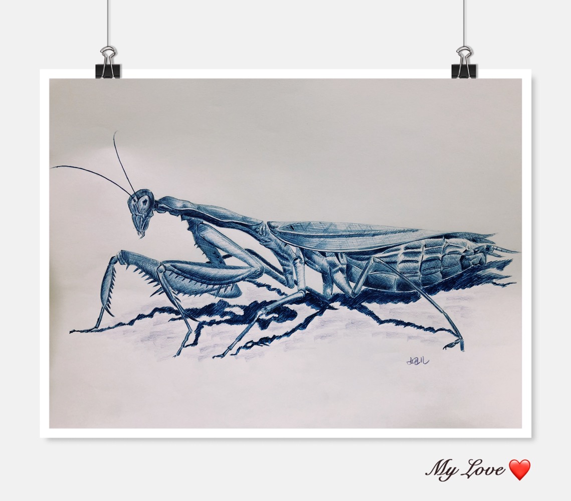 累手细活之圆珠笔画螳螂终于完工!
