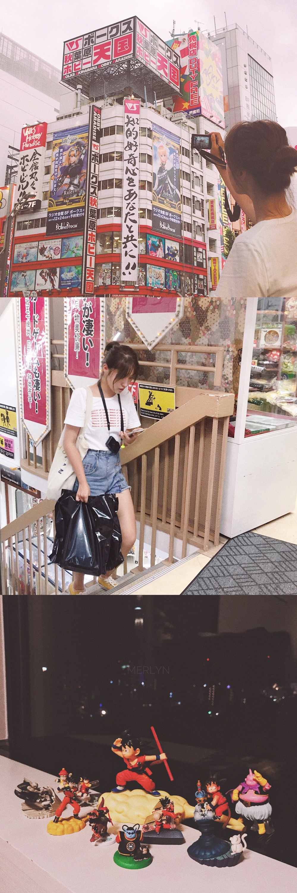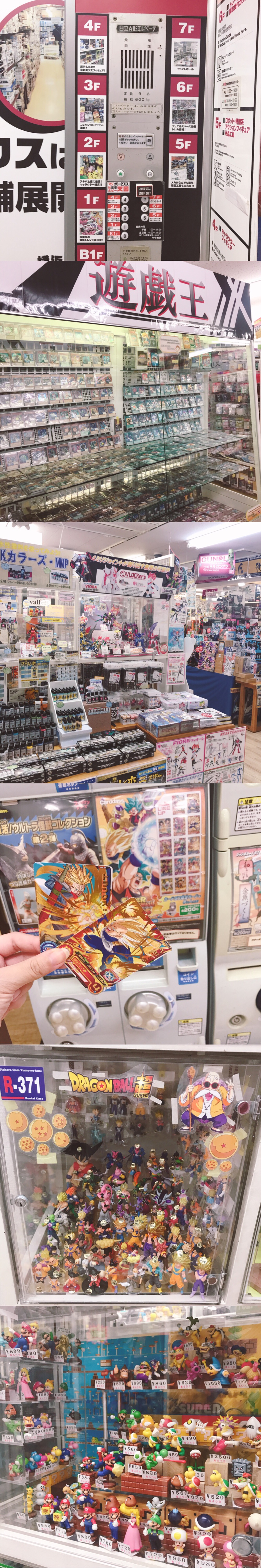 2、打卡胜地「天国」,B1、1层是手办,绝大多数是中古,买一个少一个,价格都很不错,要细细地逛能淘到很多好东西,这两层就能消耗两三个小时,2、3层是一些可爱的小东西,毛绒玩具各种小零件等等,4层是美少女专层,5层是机甲专层简直可怕!眼花缭乱各种小工具颜料配件都有!6是卡片专层,很多很多绝版卡片!也有正在发售中的~ 7层就是小展览了,我这次看到的是一个不知道什么的美少女