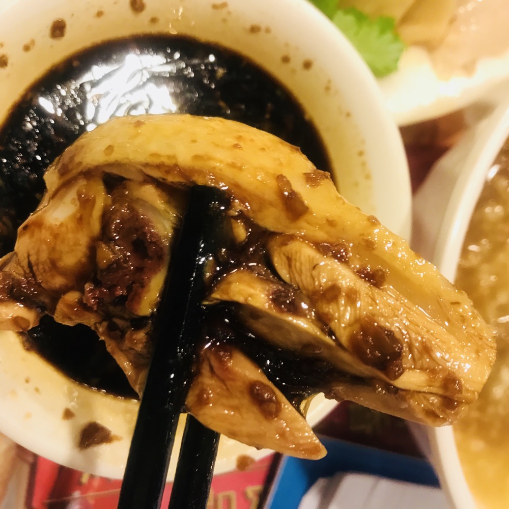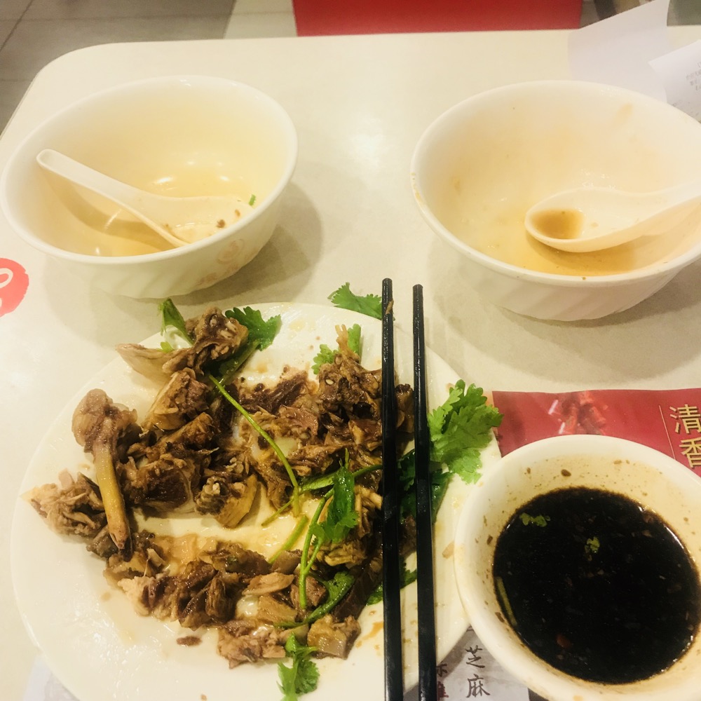 【白斩鸡】是我吃过最好吃的。要了1/4份,腿的哪一部分。鸡冰过一道,只有鸡鲜味,没有腥味,搭配的蘸料也是清爽,鸡皮和鸡肉之间的那一层肉冻是最吼的。整盘鸡吃干榨尽。