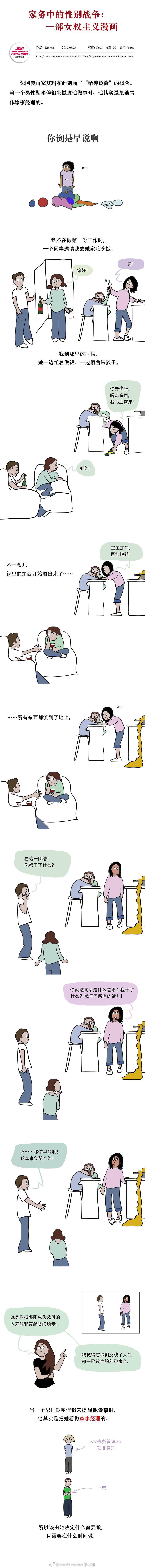 《家务中的性别战争》建议大家都看看,并不觉得这是女权主义漫画,它只是理性分析:在异性恋世界的两性关系,为何会翻船在柴米油盐的迷雾中。