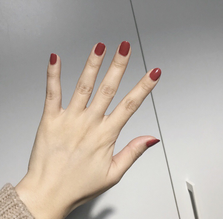 essie的指甲油的特点就是通透,涂起来非常顺滑,刷头很大,味道不算太浓,图为涂了一层sally hansen的hard as nails的硬甲油(透明粉色,大S在N多年前在她的书里有推荐过哦~)+薄涂两层in stitches的颜色,这个颜色很好涂匀,白皮显得更白,对黄黑皮不算太友好,暖调深豆沙粉,四季皆宜,温油~