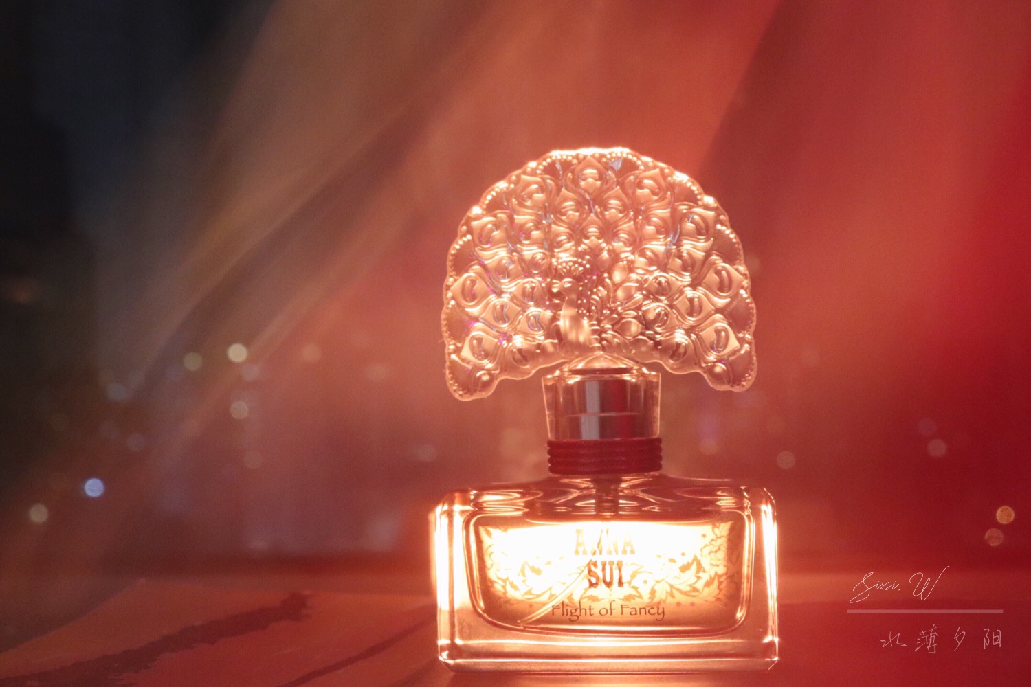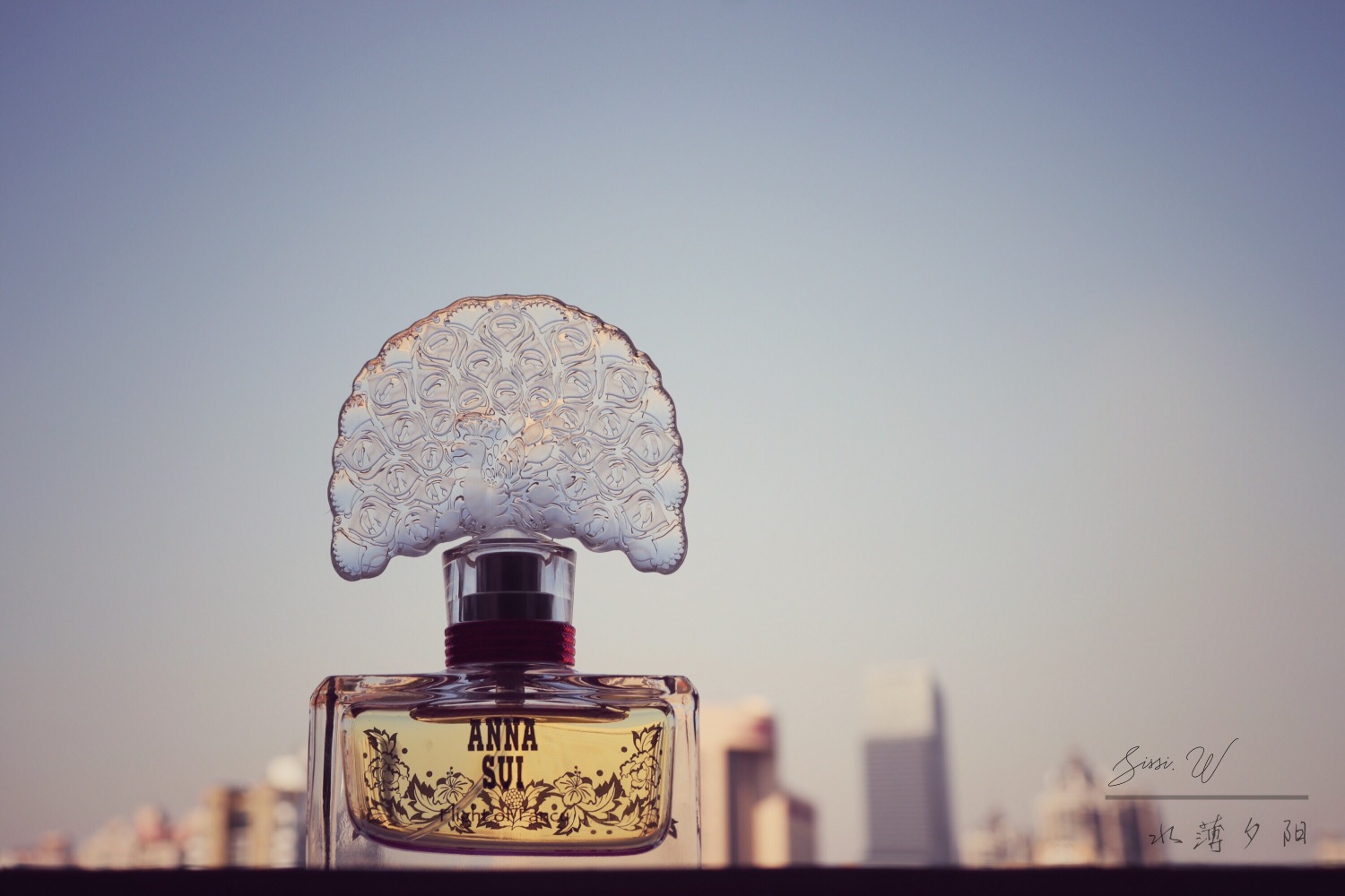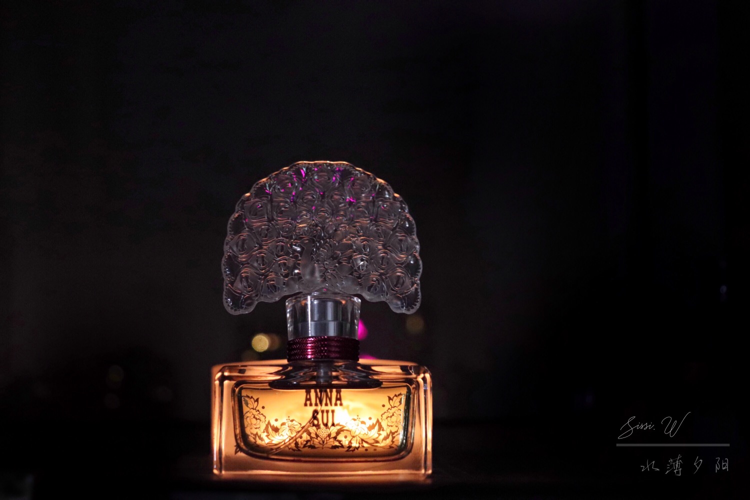 外观设计很Anna Sui,梦幻的小公主风格,甜美骄矜。开屏绽放的孔雀做瓶盖,瓶身是玻璃纸色调的粉红底,香水呈淡黄色,呼应在一起很像彩色的水晶宝石。哪怕是单纯作为梳妆台上的摆设,也是非常好看的点缀。