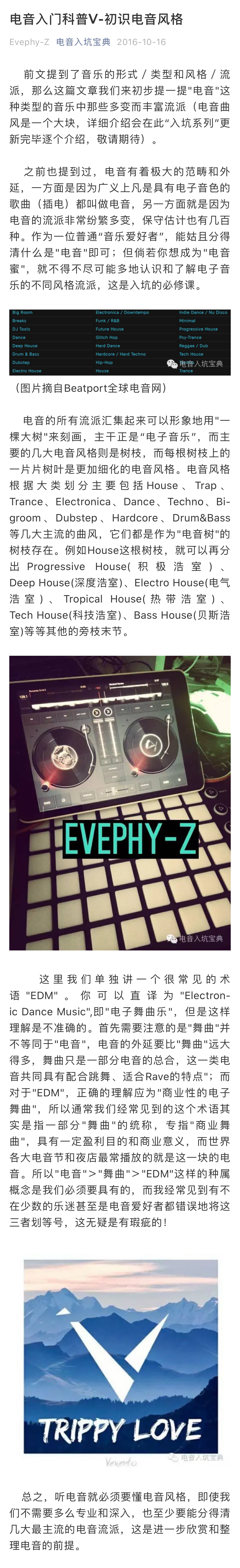 【电音入门科普vol.5-初识电音风格】本期简单罗列了一些主流电音风格:House、Trap、Trance、Electronica、Dance、Techno、Bigroom、Dubstep、Hardcore、Drum&Bass等。其他颗粒度更细的分类大家可以慢慢了解;另外还提出了EDM的概念,帮助大家区分电音、舞曲和EDM的区别。