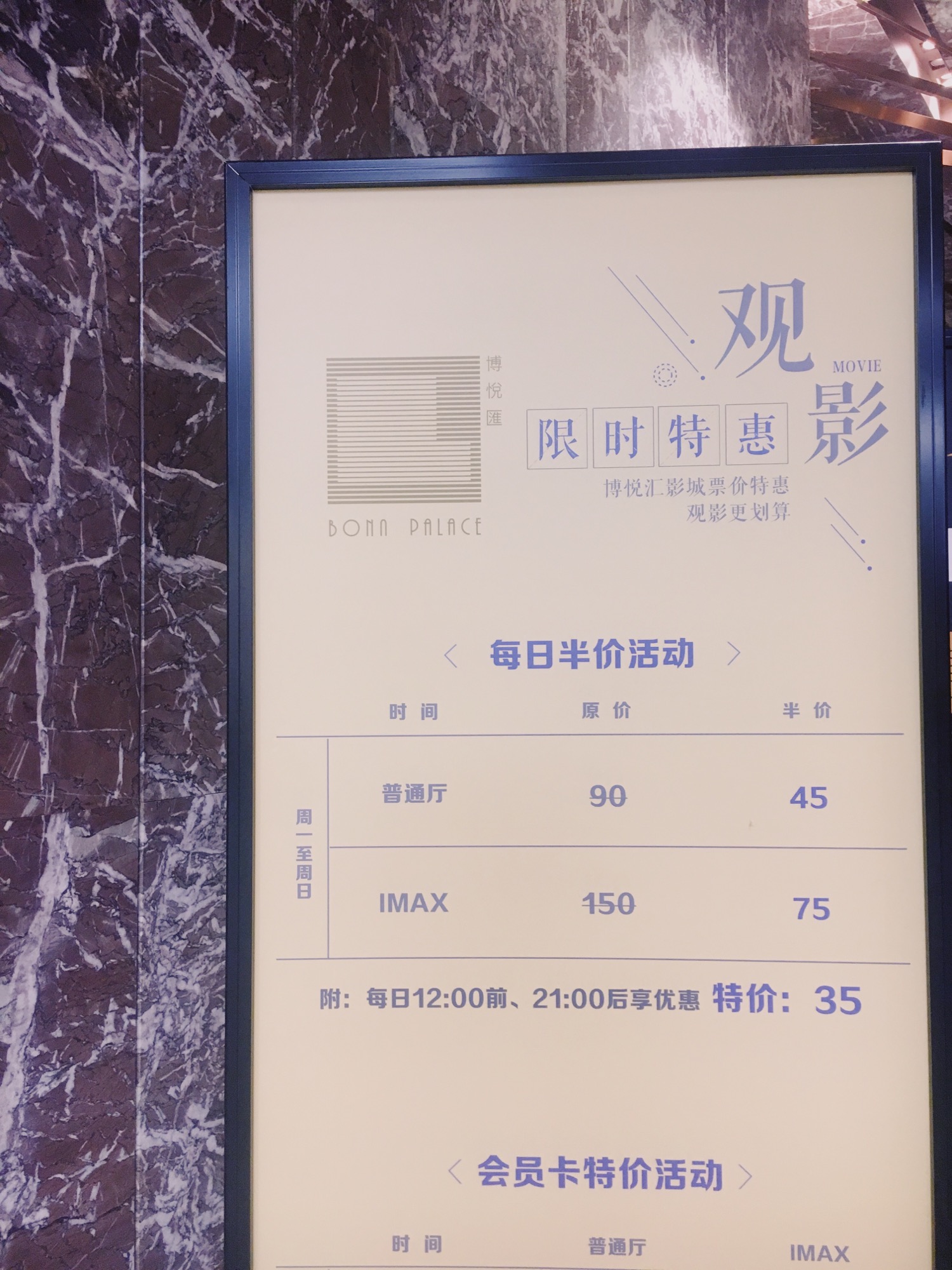 刚开业啦,生意很惨淡,所以活动力度也是非常大的,普通票半价45,imax半价75,早上十二点前、晚上九点后去只要35……折扣到12月31号结束。