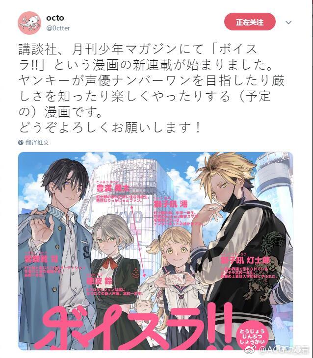 Octo(宝井理人)新作「ボイスラ!!」将于月刊少年Magazine开始连载!