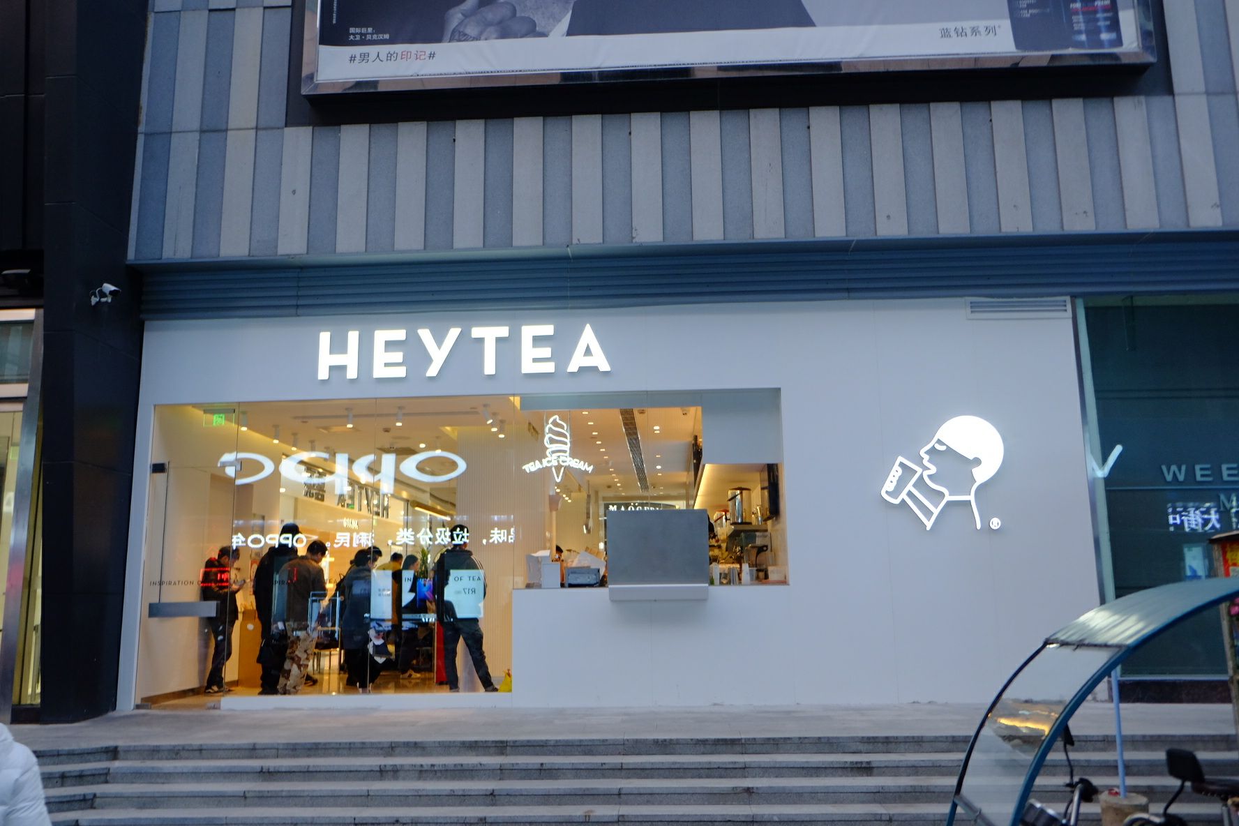 这几天喜茶和奈雪之茶分别开出本地的第一家店,位置非常有意思——面对面的两个广场的一楼。