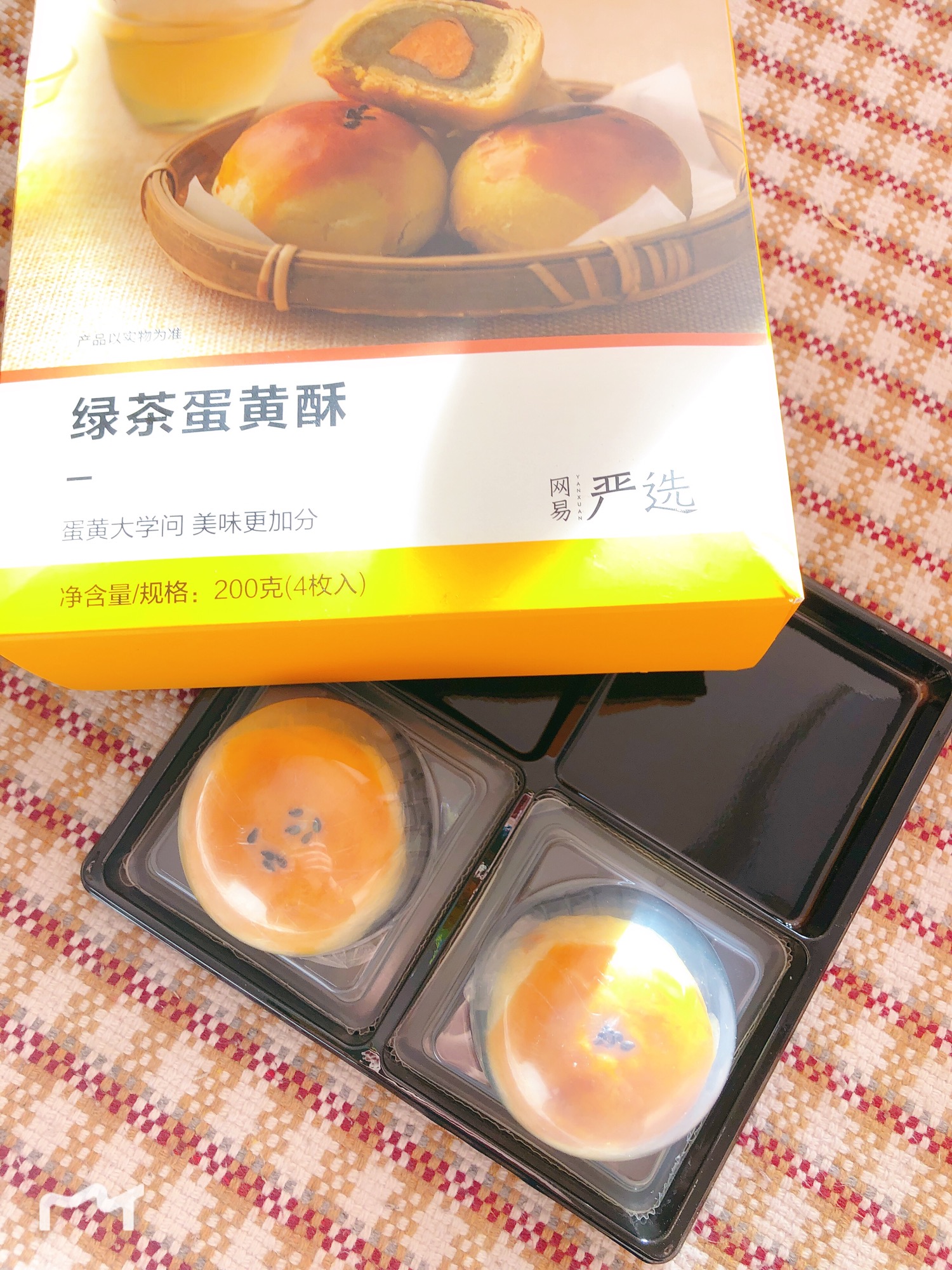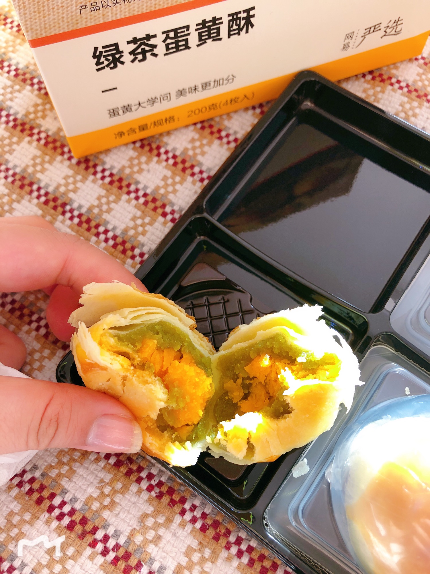 墙裂安利!网易严选的绿茶蛋黄酥!酥皮不是那种酥脆的口感,但是绵绵软软很好吃,绿茶馅味道不是特别重,因此并没有抢了蛋黄的风头,却很好地中和了蛋黄的咸味。整体吃起来不很甜,一次吃两颗也不会腻。价钱也非常友好,4颗一盒,19.9元,比我在其他地方买的都要便宜很多。每一颗都有密封的独立包装,想装在包里做下午点也很方便喔。