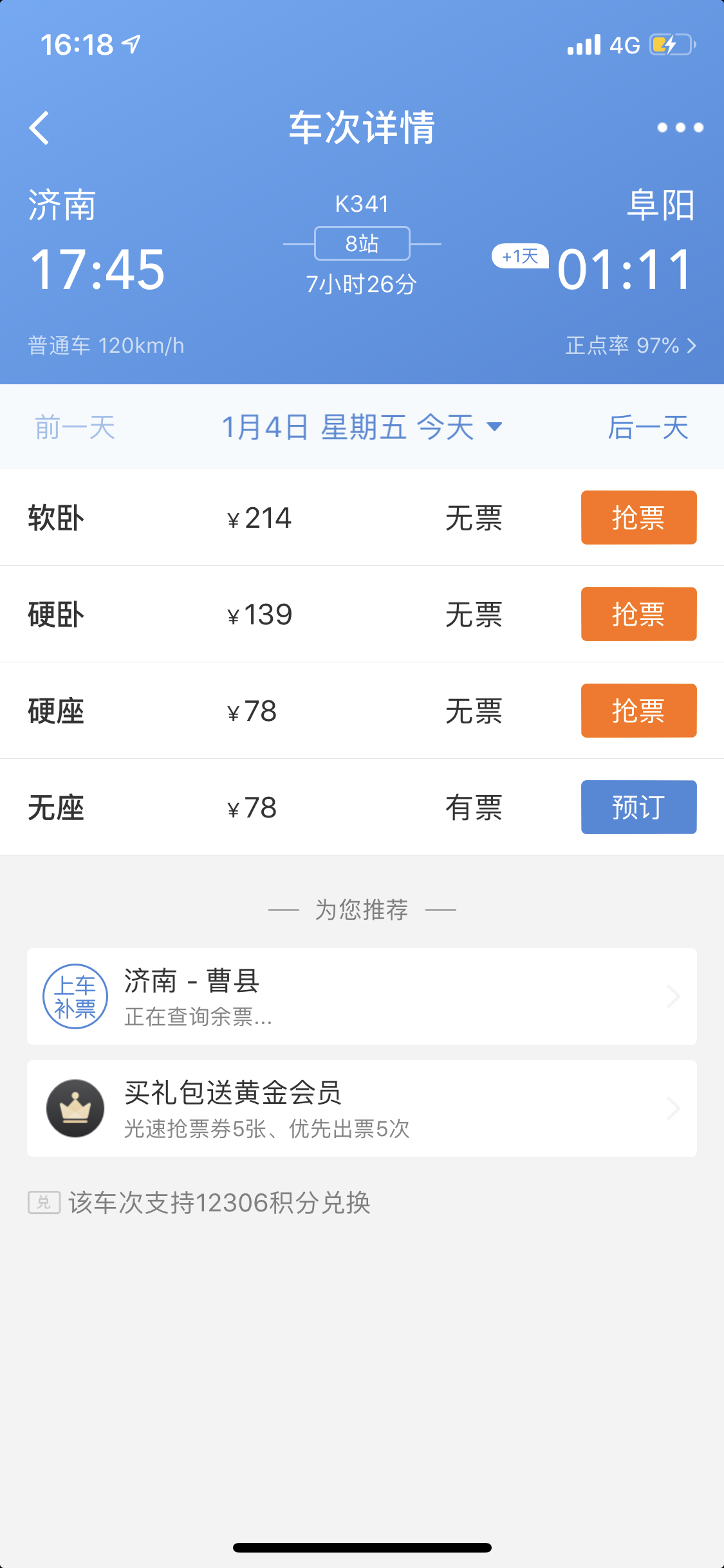 最后一点,在2017年8月,我购买了10号阳平关到西安k166次列车的车票,软件在我出发前提醒我这辆车取消了(好像是由于当时的地震),经过向12306客服查询,发现取消的是10号由昆明发车的车次,而我购买的那张票,是9号就从昆明开出了,所以并未取消。这个功能我在别的软件上没见过,但它提醒的是错误的消息,所以不太确定这个功能可不可以算优点。