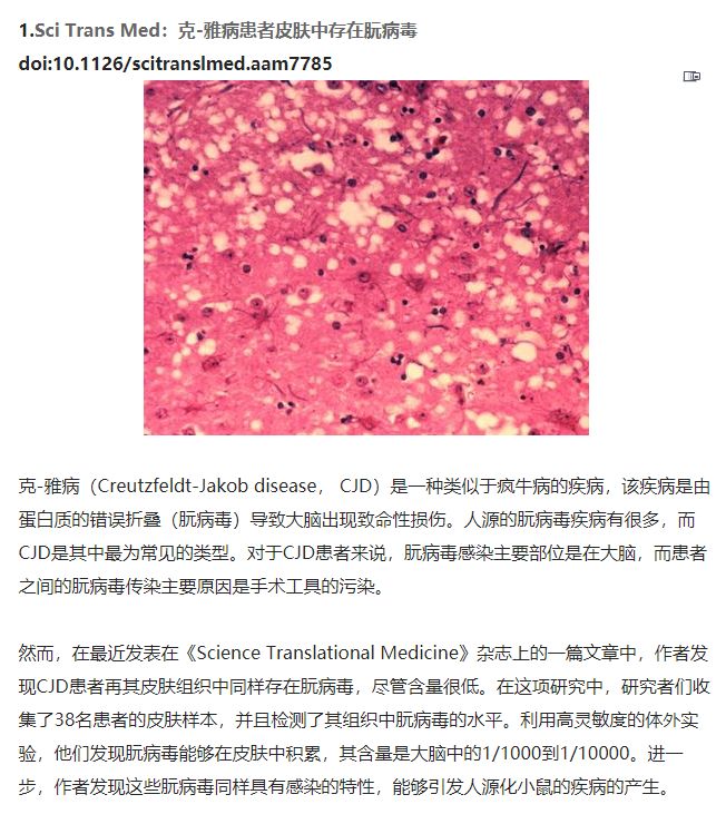 有,朊蛋白引起的传染性海绵状脑病。它在羊身上叫“羊瘙痒病”,牛的“疯牛病”也是它,人类的叫“克-雅氏病”,特别的,巴布亚新几内亚因为吃死人传播的叫“库鲁病”。(图2)